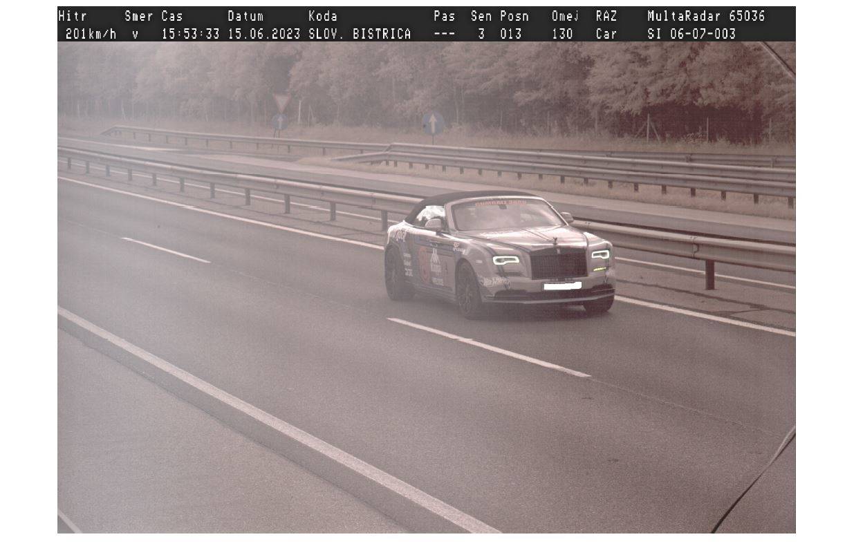 Voznik osebnega avtomobila znamke Rolls Royce je vozil s hitrostjo 201 kilometer na uro, kljub temu da je hitrost omejena na 110 kilometrov na uro.
