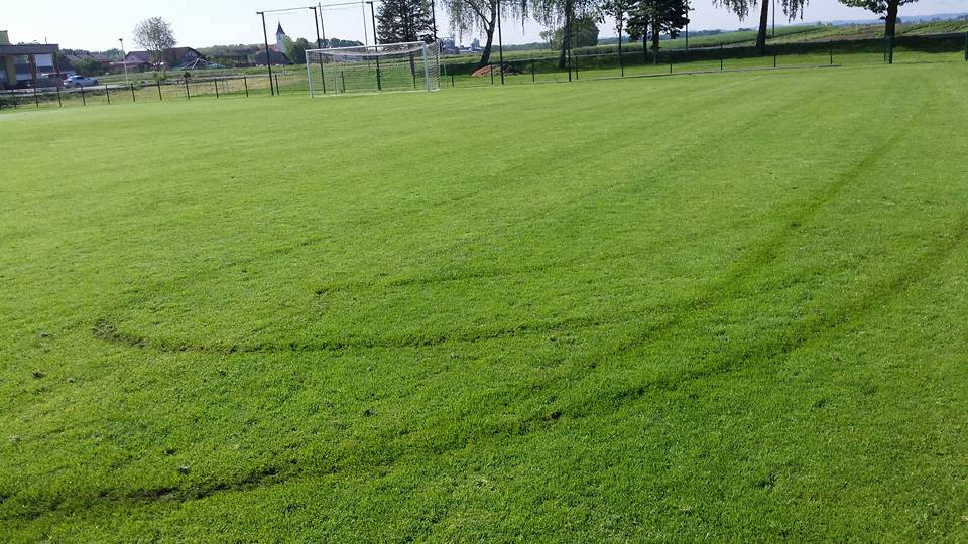 Policija tako išče neznanega storilca, ki je po nogometnem igrišču naredil nekaj zavojev, s katerimi je močno poškodoval vzorno urejeno travnato površino.