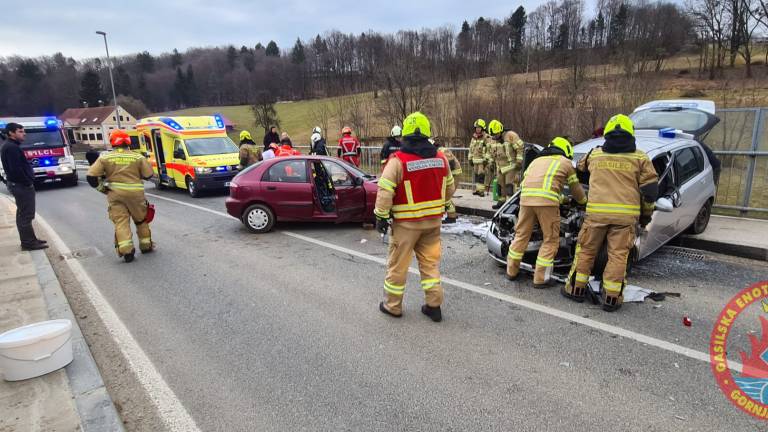 Ob 14.51 sta v naselju Brengova pri nadvozu čez avtocesto trčili osebni vozili.