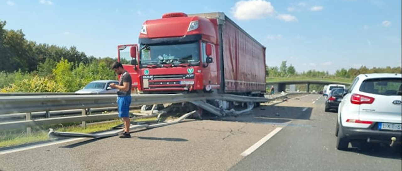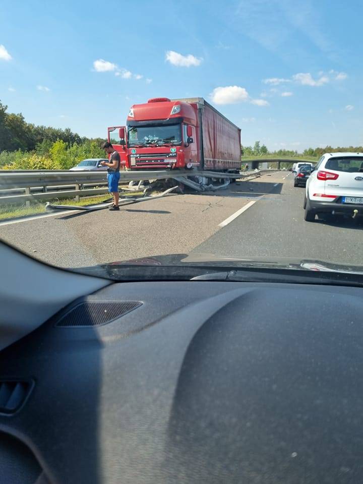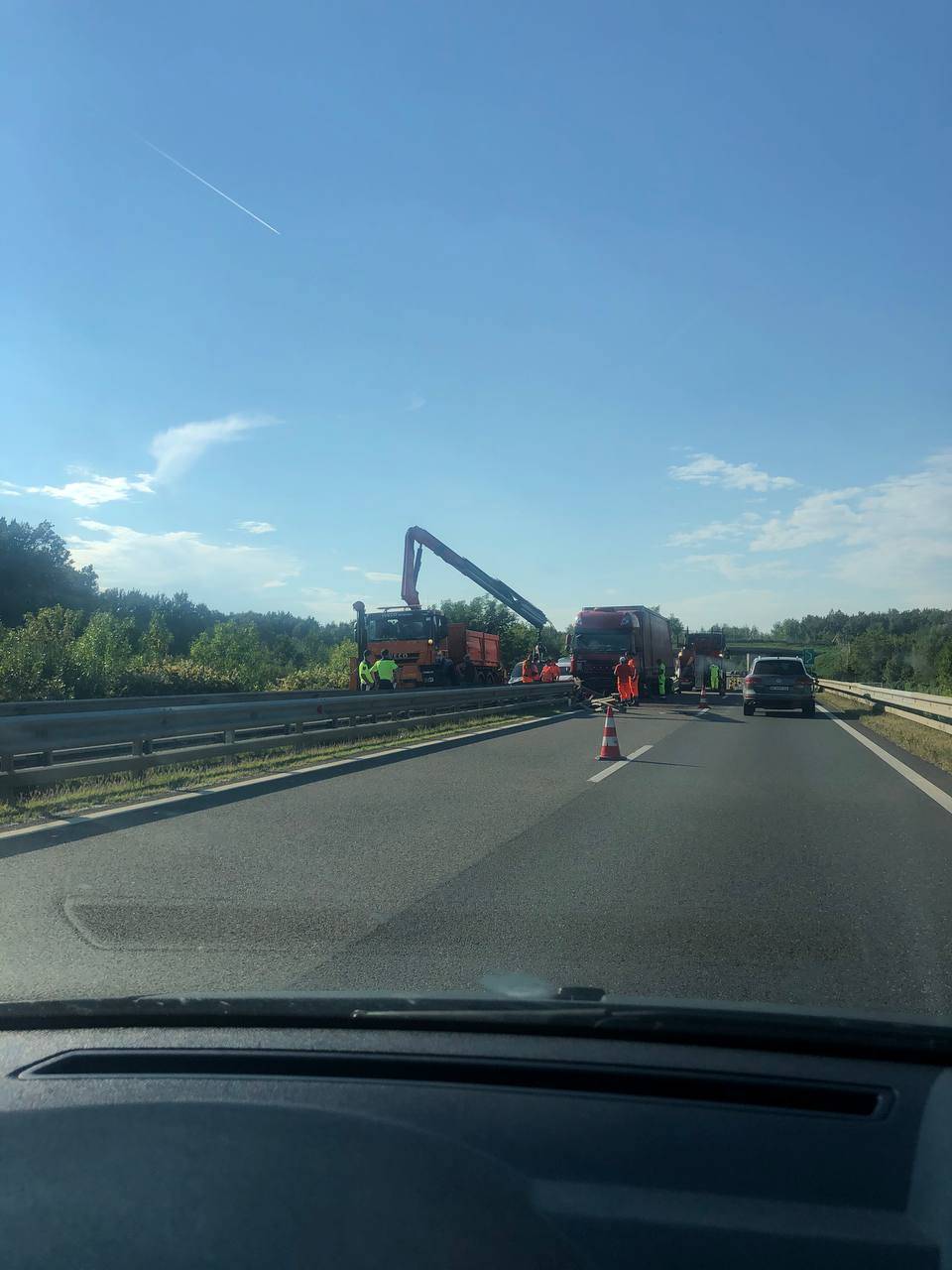 Uporabniki Facebook skupine Radarji v Pomurju poročajo, da je v ograjo med obema pasovoma na avtocesti trčil tovornjak.