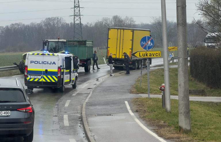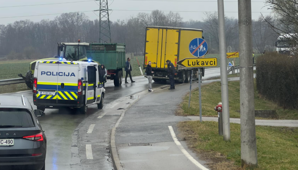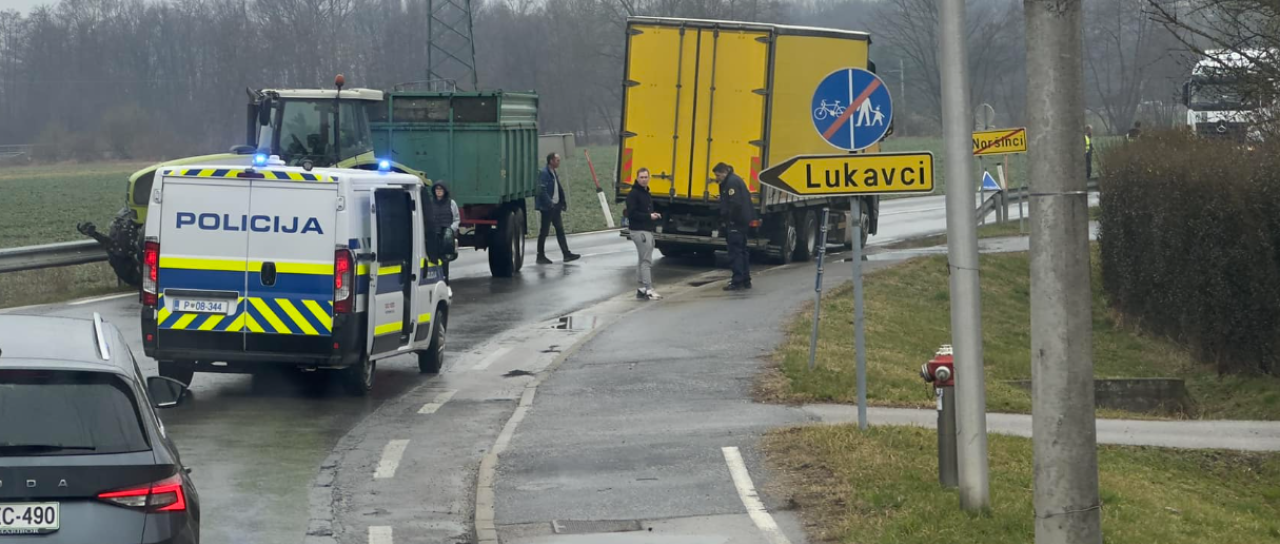 Po za zdaj znanih informacijah sta v naselju Noršinci pri Ljutomeru trčila traktor in tovorno vozilo, na terenu pa so policisti.