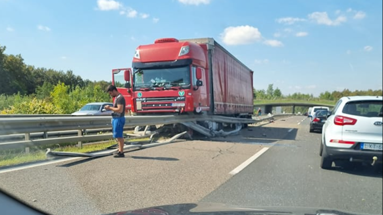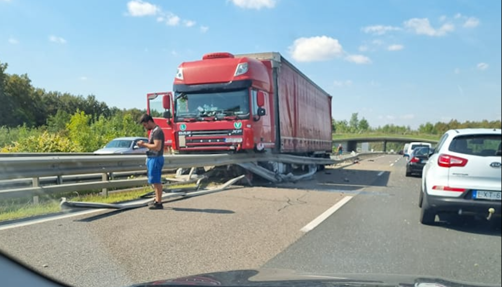 Počilo na pomurski avtocesti! Tovornjak nasedel na ograji