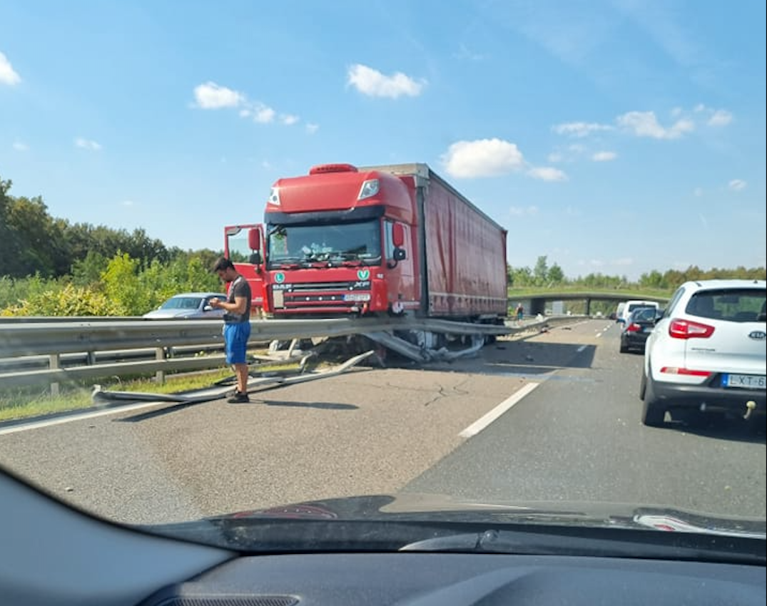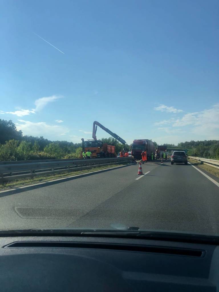 Zaradi poškodovane varnostne ograje in tovornega vozila na nasprotnem pasu je imela pomurska avtocesta med Turniščem in Dolgo vasjo zaprta prehitevalna pasova v obe smeri.