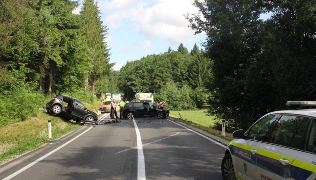 47-letna voznica osebnega vozila je v smeri od Lašč proti Turjaku iz doslej še neznanega razloga zapeljala na nasprotni vozni pas.