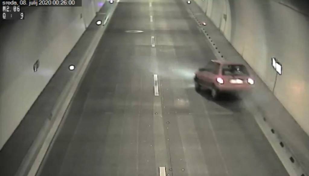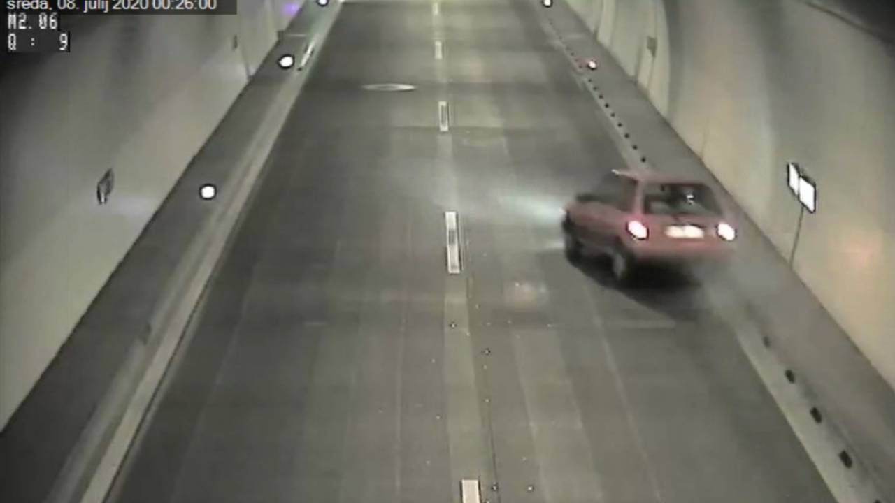 Poglejte, kako je pijan voznik zadel v robnik in v predoru pristal na strehi