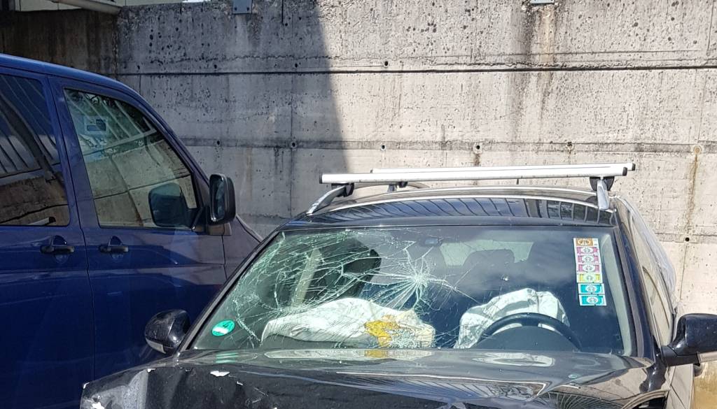 V tem trenutku je iz nasprotne smeri z veliko hitrostjo pripeljal voznik passata, trčil v robnik ob cesti in izgubil oblast nad vozilom. Avtomobil je bočno drsel, čelno trčil v službeni avtomobil policije, potem pa je vozilo odbilo v policista, ki sta bila ob vozilu.