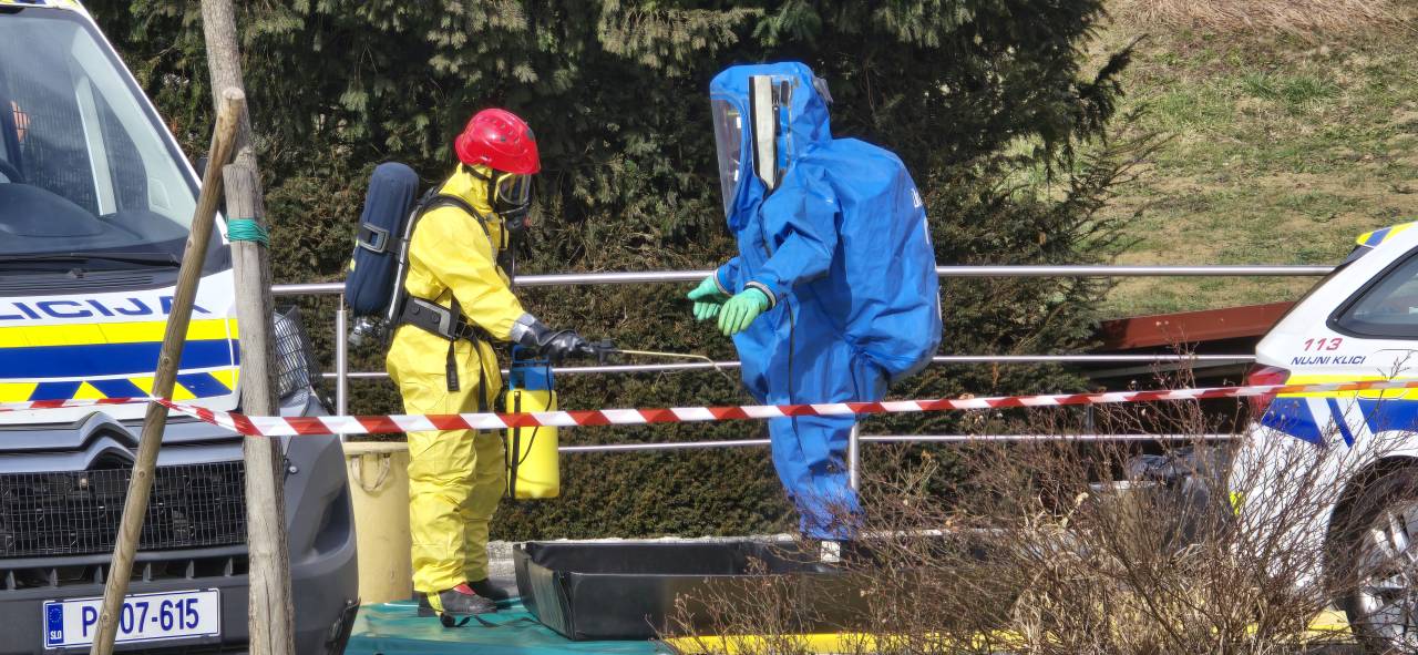 Policisti izvajajo aktivnosti, ki so v teh primerih predvidene, ustrezno je zavarovana tudi okolica policijske postaje. Na kraju posredujejo tudi gasilci.