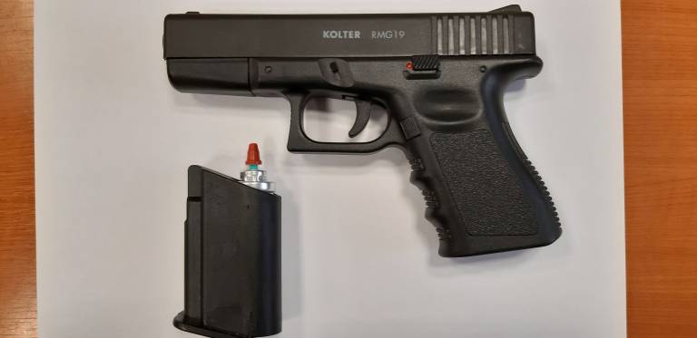 V času pridržanja so policisti opravili preiskavo obeh vozil in hišno preiskavo stanovanja, ki ga imajo najetega vodiči. V enem od vozil so v predalu sopotnikovega sedeža našli plinsko pištolo. Lastnica pištole državljanka Belgije, ki ne poseduje ustrezne orožne listine oziroma dovoljenja za posest orožja, ki dovoljuje posamezniku posest in prenašanje posameznega kosa orožja.