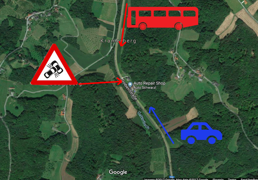 Kaj natančno se je dogajalo v soboto zvečer ob 22:12 na glavni cesti med krajema Tauka in Minihof-Liebau zaenkrat še ni znano. A po doslej znanih neuradnih podatkih naj bi osebno vozilo, ki ga je vozilo dekle, zapeljalo na nasprotno vozišče, po katerem je takrat pripeljal avtobus. Po trčenju je avtobus zapeljal s ceste in trčil v visoko betonsko ograjo ob cesti.