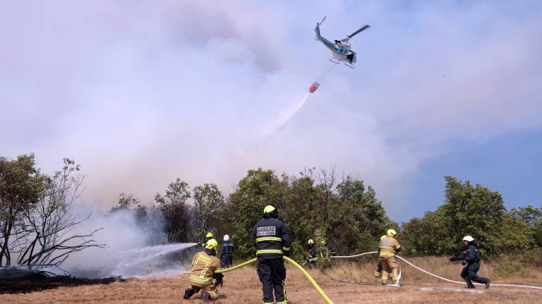 Požar na Krasu gasi šest helikopterjev in pilatus, na pomoč prihajajo tudi tri romunska letala in hrvaški kanader.