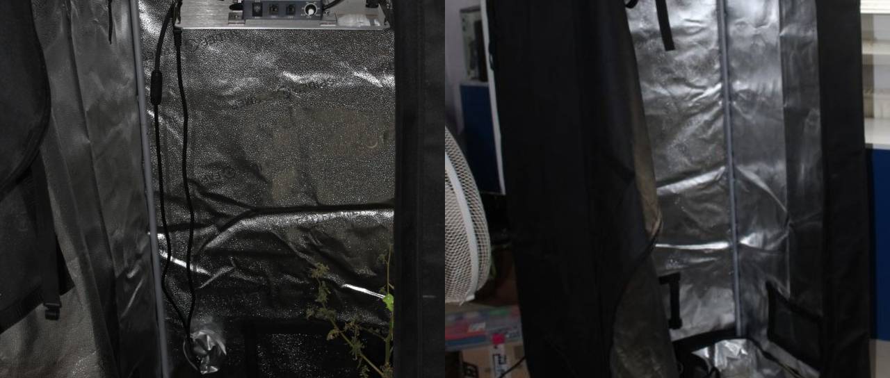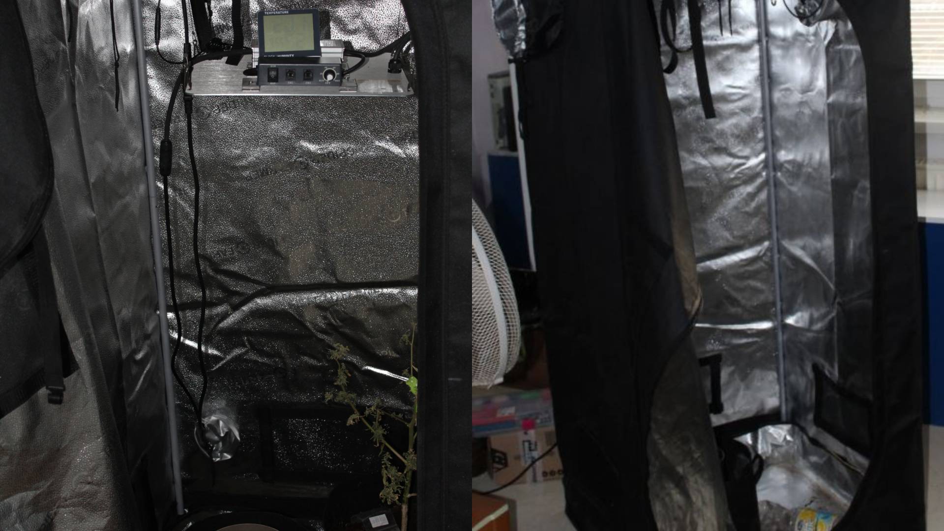 Med preiskavo je bil najden prostor za hidroponično gojenje konoplje. Zasežena je bila manjšo količino neznanih posušenih rastlinskih delcev, led lučka za gojenje rastlin, elektronski merilec temperature in vlage, komplet zračnih filtrov in več plačilnih kartic.