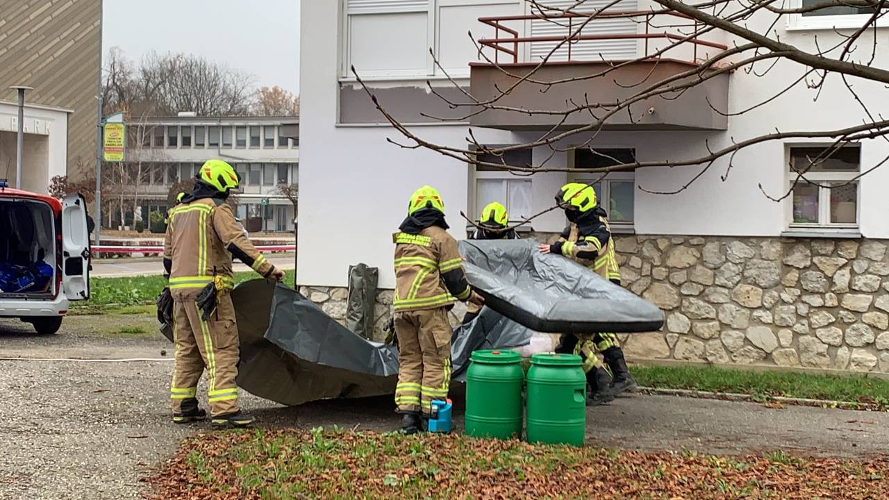 V središču Murske Sobote, na ulici Štefana Kovača pri bloku nasproti Gledališča Park mrgoli policistov in gasilcev. Kot nam je uspelo izvedeti, je eden od stanovalcev prejel kuverto z belim prahom.