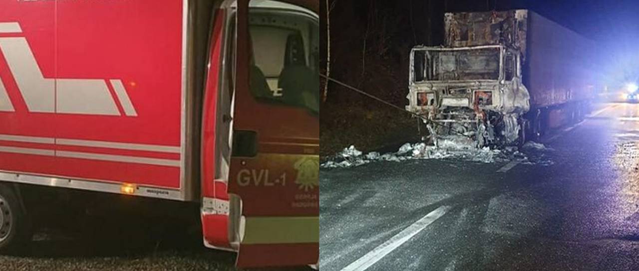FOTO in VIDEO: Na pomurski avtocesti zagorelo tovorno vozilo
