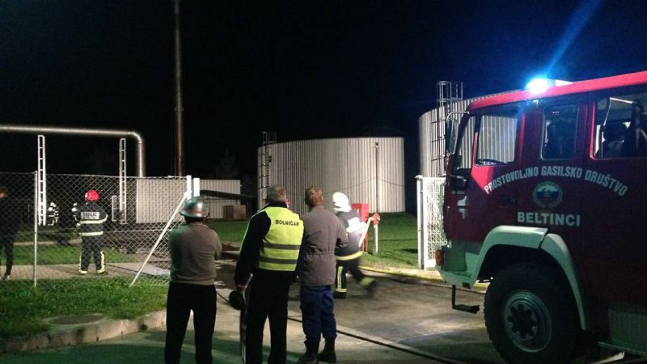 Včeraj okrog 20.17 ure je v naselju Ižakovci, občina Beltinci, v bioplinarni zagorela kondenzacijska posoda. Zaradi požara je prišlo do pregretja kondenzacijske posode in dimnika. Grozila je porušitev dimnika, saj so od vročine popokale žične vrvi dimnika višine 20 metrov. Posredovali so gasilci PGD Ižakovci, Beltinci in Bratonci, ki so z vodo ohladili pregreto posodo in dimnik. Gasilci PGD Ižakovci občasno ohlajajo posodo in vršijo požarno stražo.