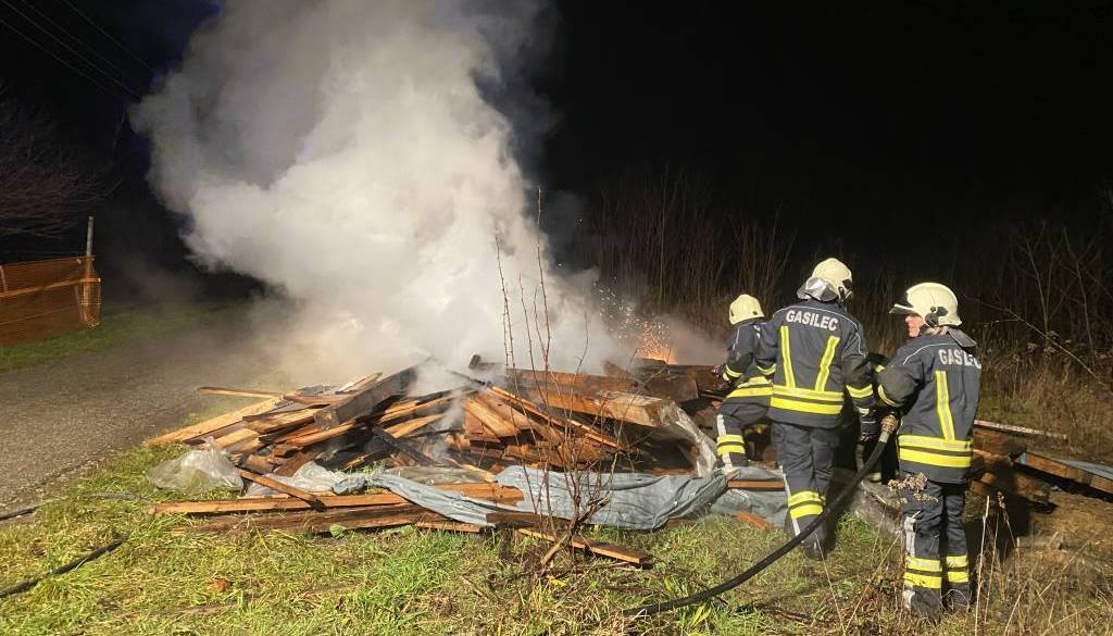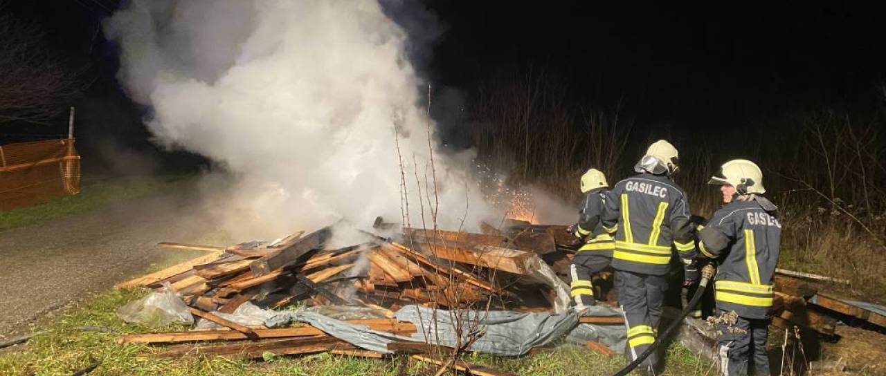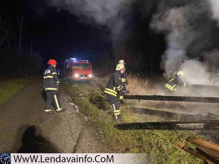 Ob cesti je zagorelo okrog 10 kubičnih metrov zloženega lesa za ostrešje. Požar so pogasili gasilci PGD Lendava in PGD Dolga vas.