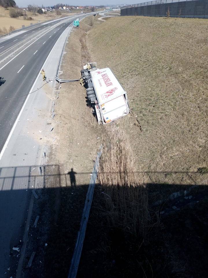 Ker je eno tovorno vozilo prevrnjeno, bo avtocesta zaprta predvidoma vsaj še tri ure, lahko tudi dlje.