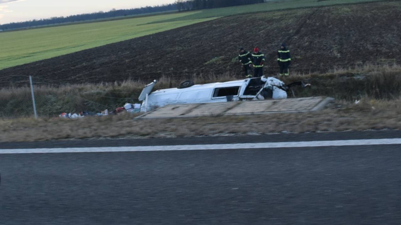 Z ogledom kraja prometne nesreče je bilo ugotovljeno, da je kombinirano vozilo znamke Mercedes Benz Sprinter ukrajinskih registrskih številk vozilo po pomurski avtocesti v smeri Madžarske. Približno tri kilometre pred Petrolom Pince mu je počila pnevmatika, zaradi česar se je vozilo prevrnilo na bok," so zapisali pri PU Murska Sobota.