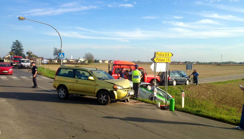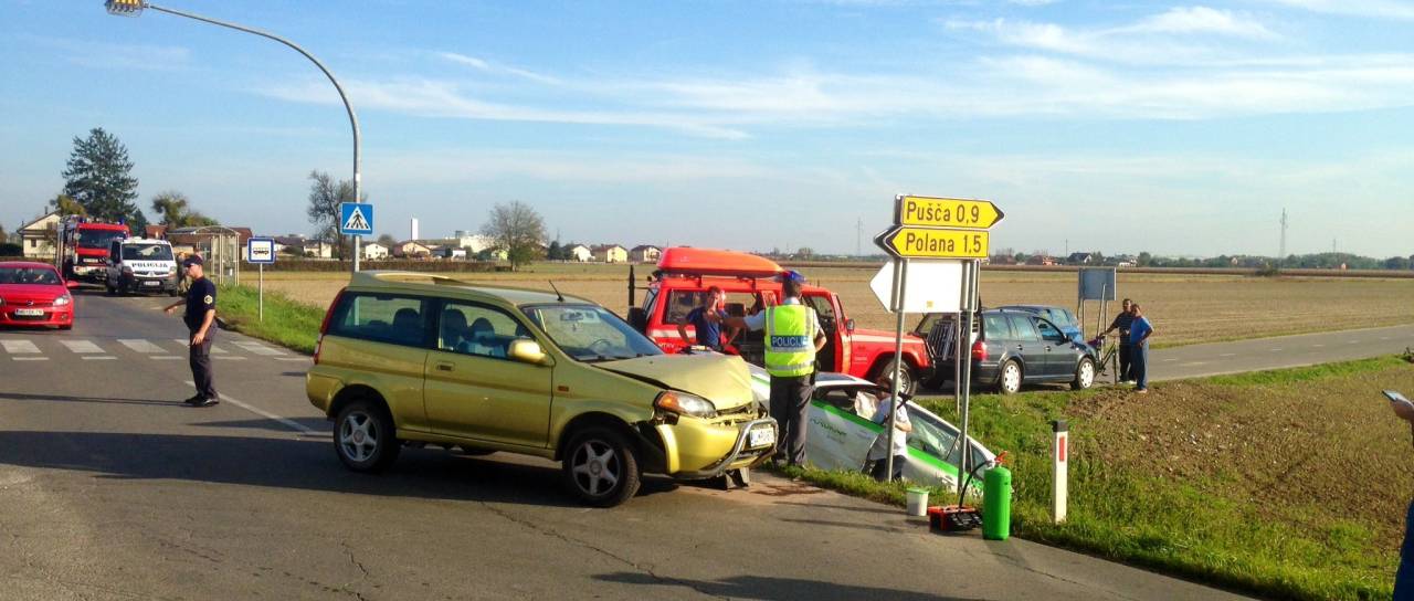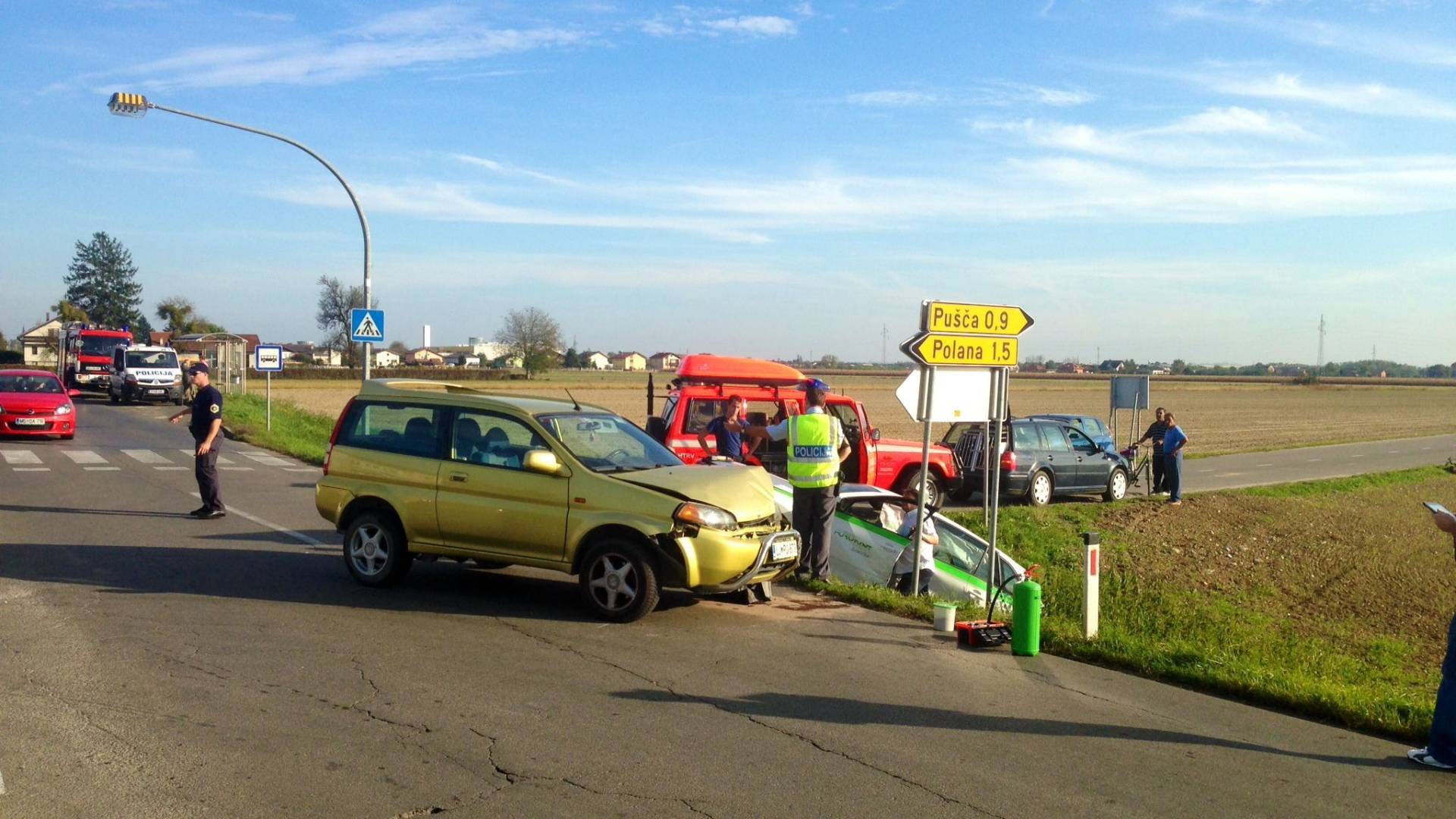 Ob 15.30 sta v Černelavcih v občini Murska Sobota čelno trčili osebni vozili. Po trčenju je eno vozilo odbilo v obcestni jarek. Gasilci PGD Murska Sobota so odklopili akumulator na vozilu, zavarovali kraj nesreče, očistili razlito olje po cestišču in pomagali reševalcem pri oskrbi ene poškodovane osebe.