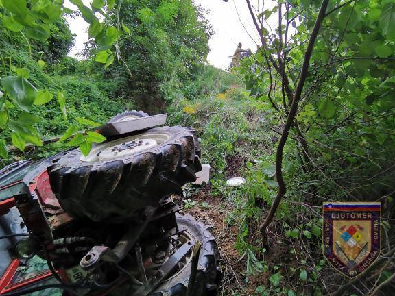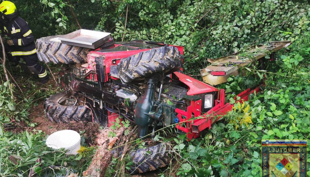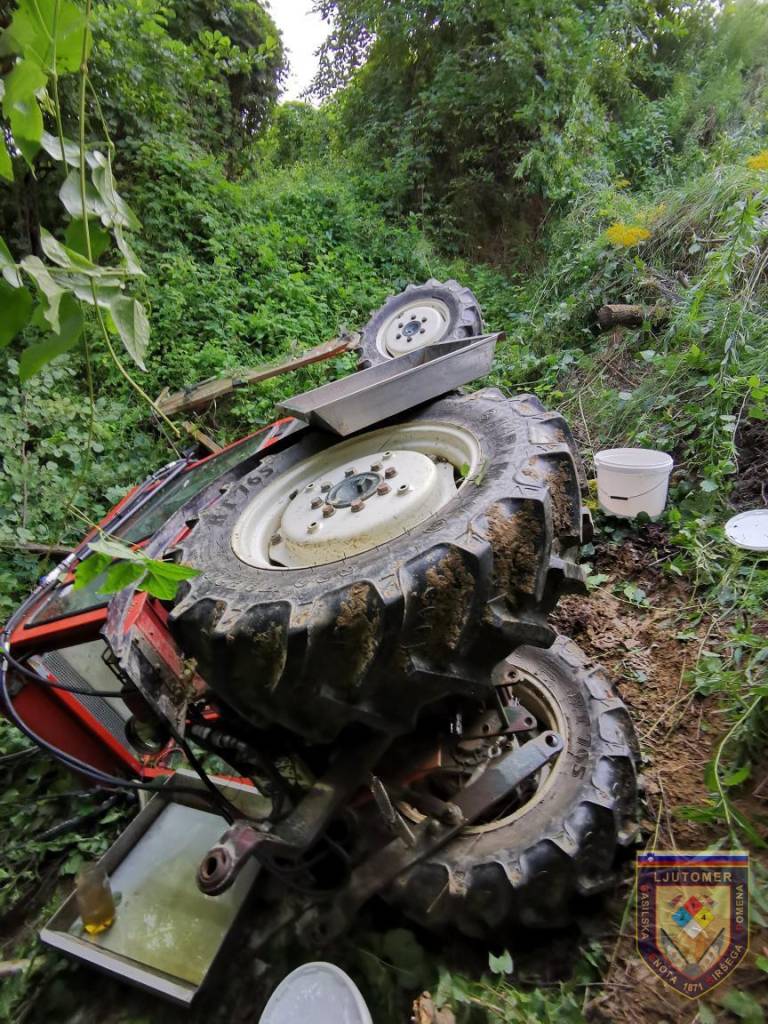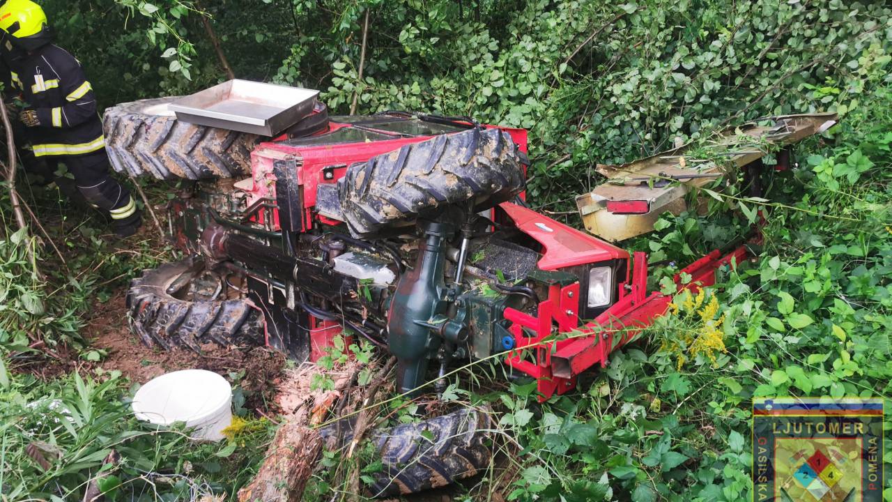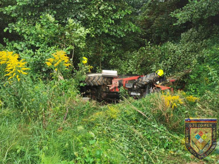 Gasilci PGD Ljutomer in Ormož so poškodovanca rešili iz traktorja, pomagali reševalcem NMP ter z vpojnimi sredstvi posuli mesto izteklih motornih tekočin.