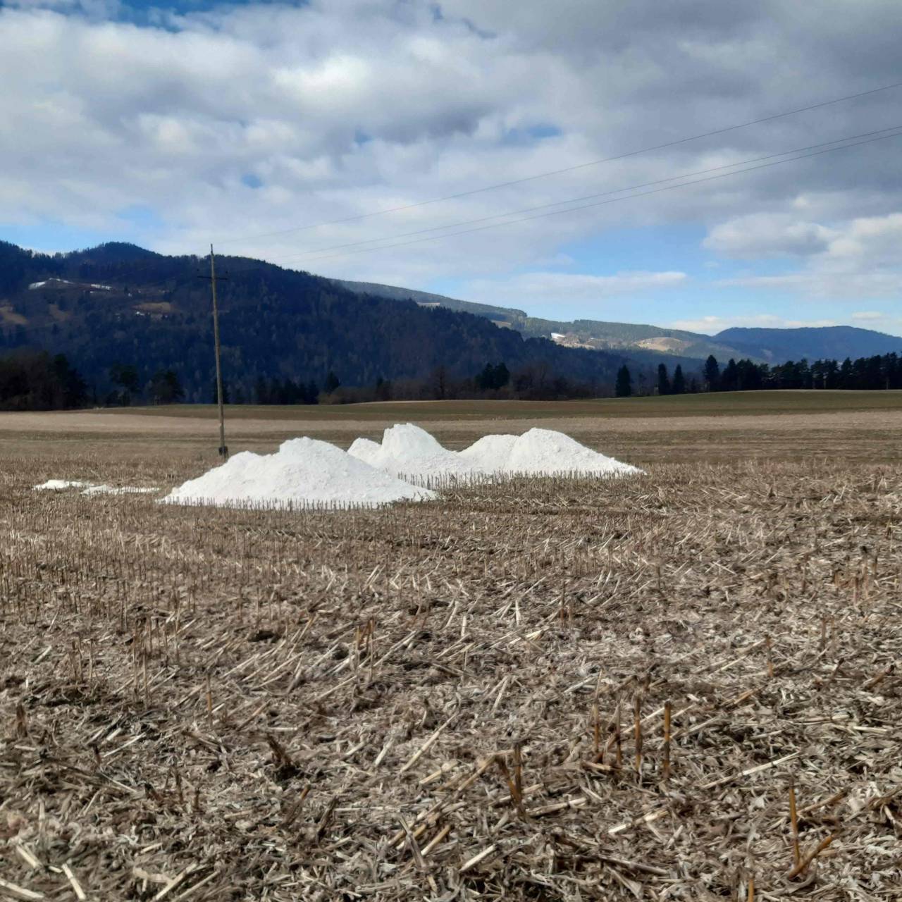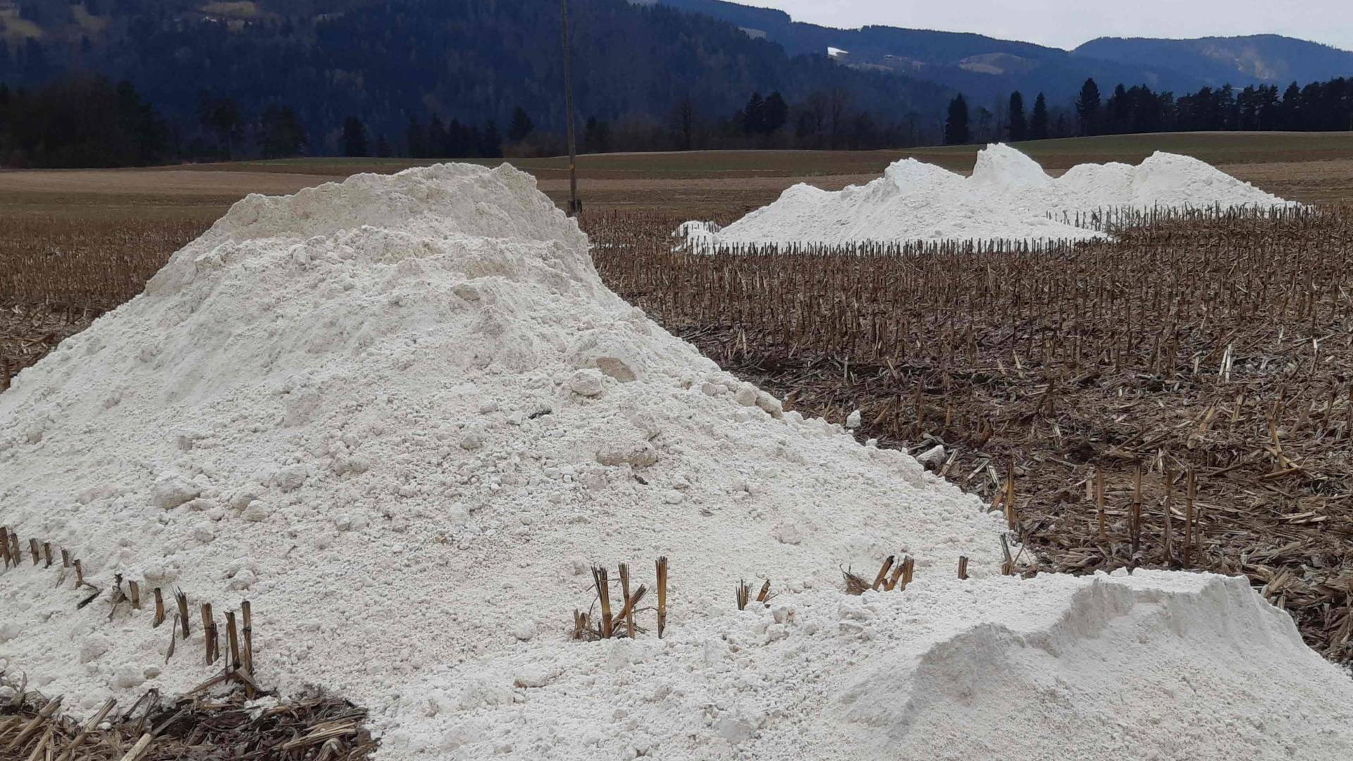 Spomnimo. Koroški kmetje so v začetku lanskega leta, v prepričanju, da gre za apno, ki ga uporabljajo za nevtralizacijo v tleh nastajajočih kislin oziroma PH nevtralizacijo, po najmanj 22 kmetijskih zemljiščih raztrosili približno 500 ton industrijske sadre.