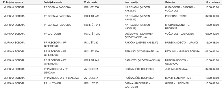 To so vse lokacije meritev na območju Policijske uprave Murska Sobota ...