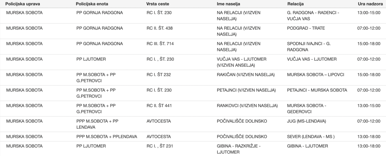 To so vse lokacije meritev na območju Policijske uprave Murska Sobota ...
