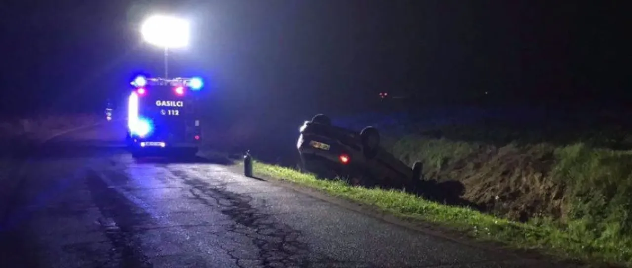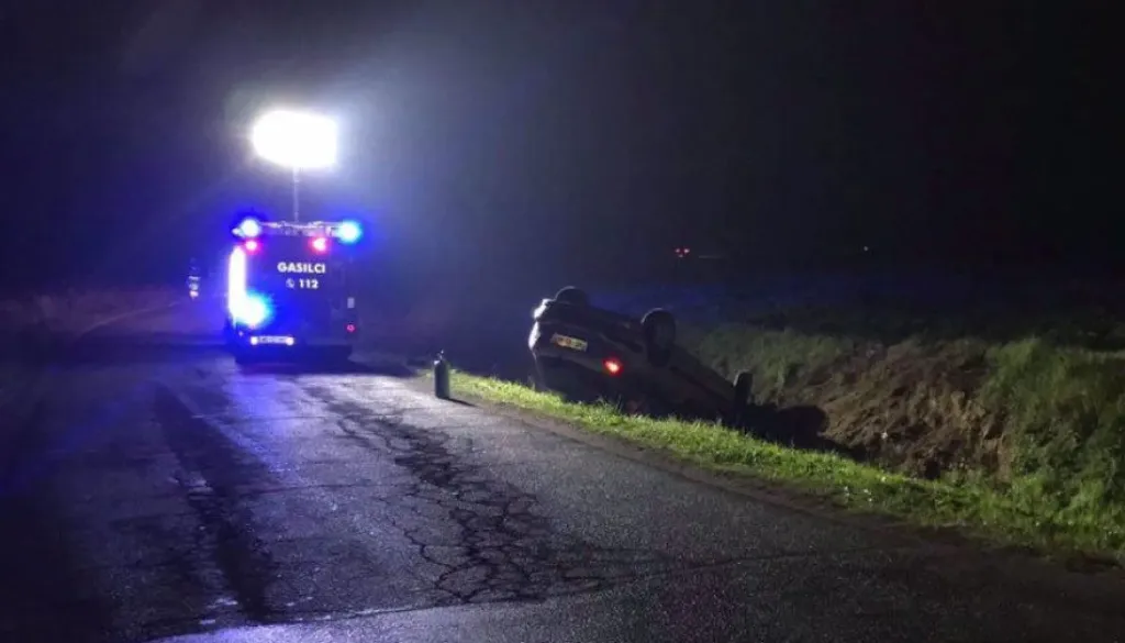 Na cesti med Puconci in Markišavci je prišlo do prometne nesreče, v kateri je avtomobil pristal na boku.