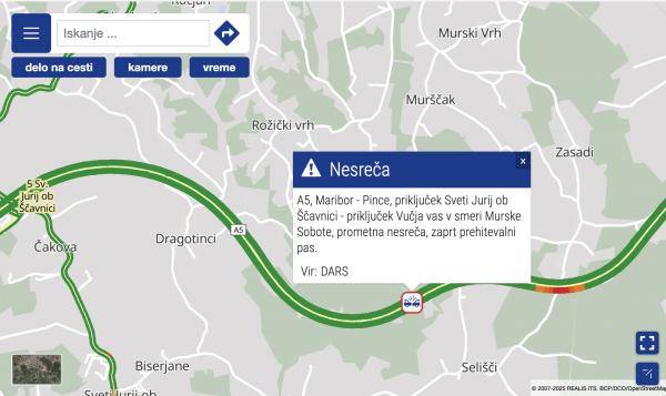 Zaradi nesreče je bil zaprt prehitevalni pas.