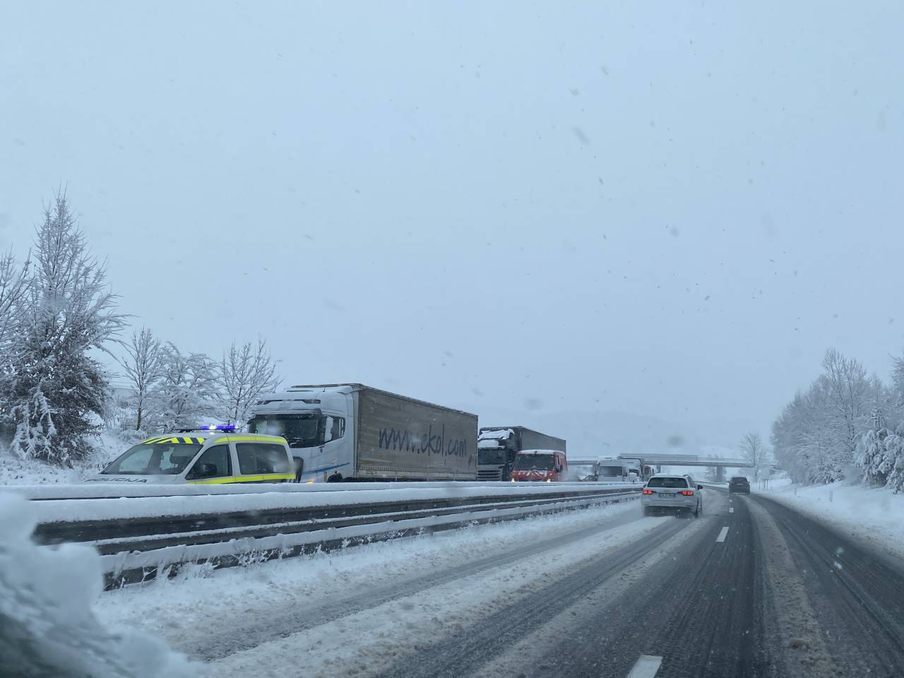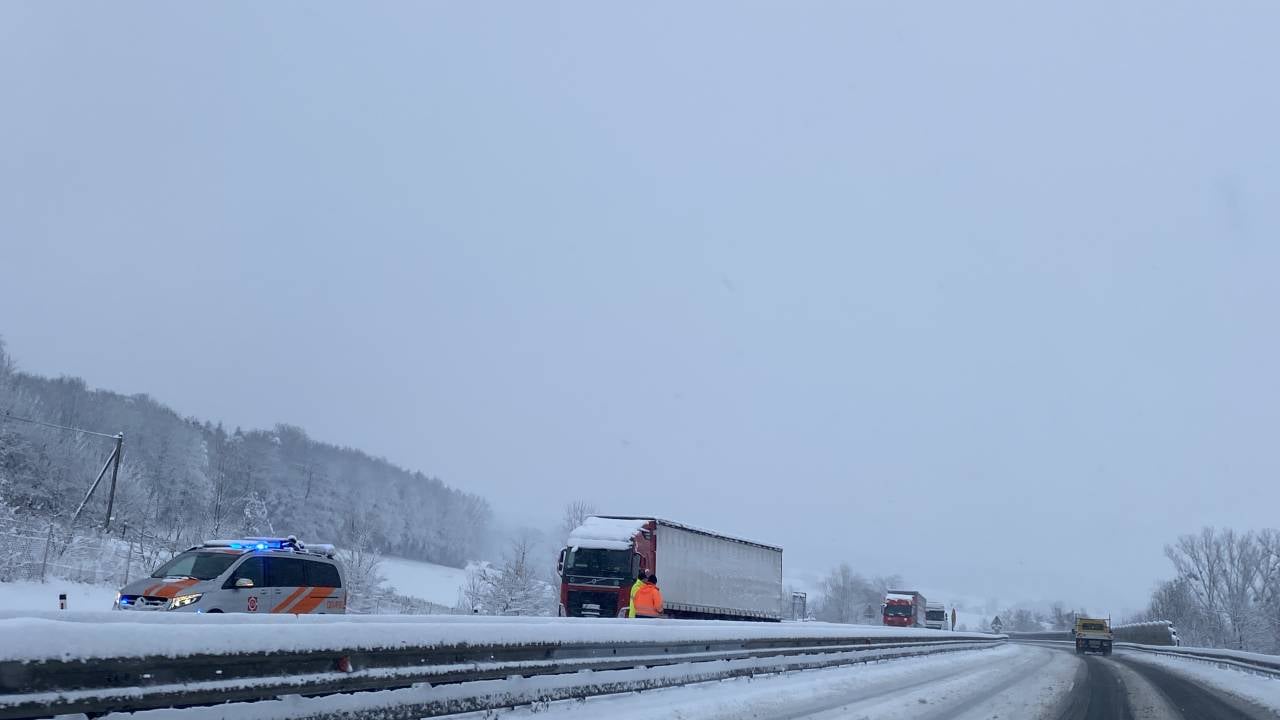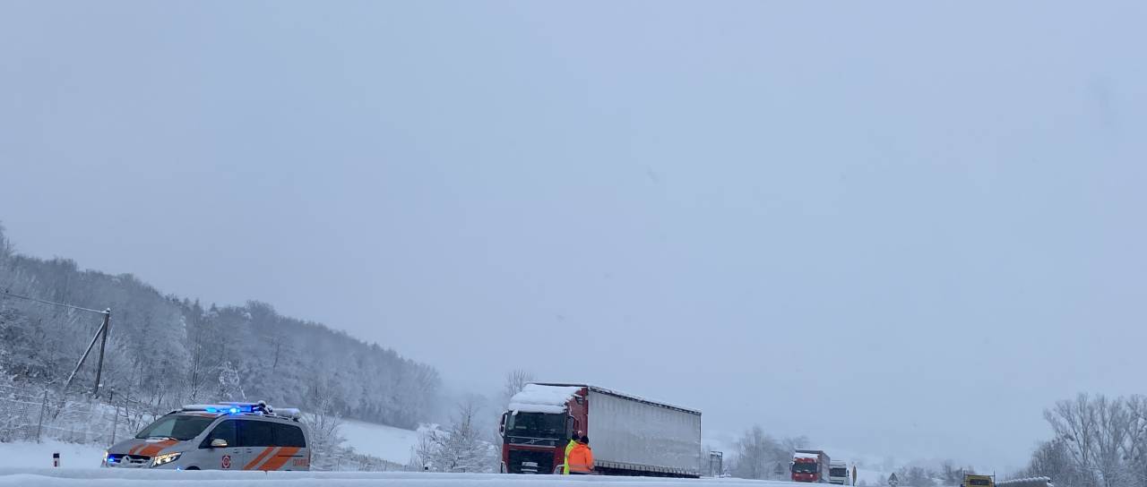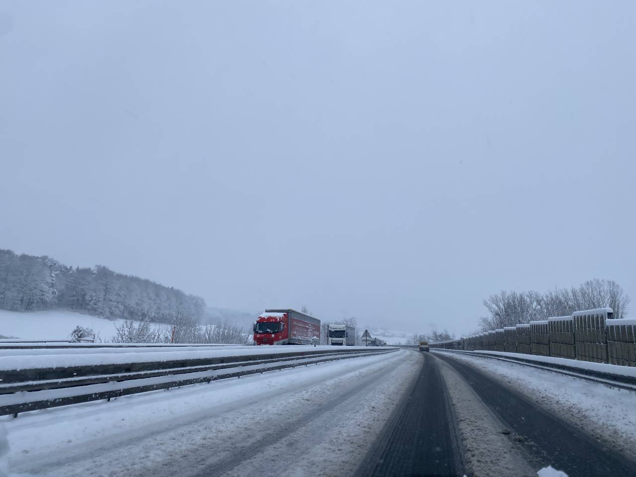 Iz smeri Murske Sobote proti Mariboru je na avtocesti zdrsnil tovornjak. O preglavicah na cestah zaradi sneženja poročajo tudi iz drugih koncev.