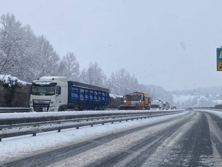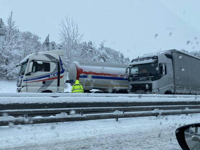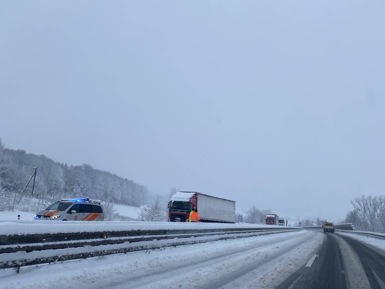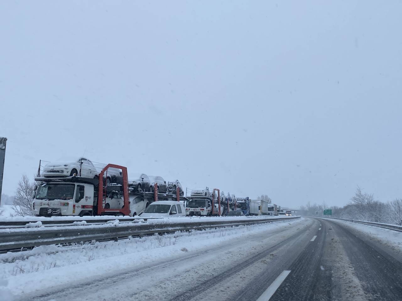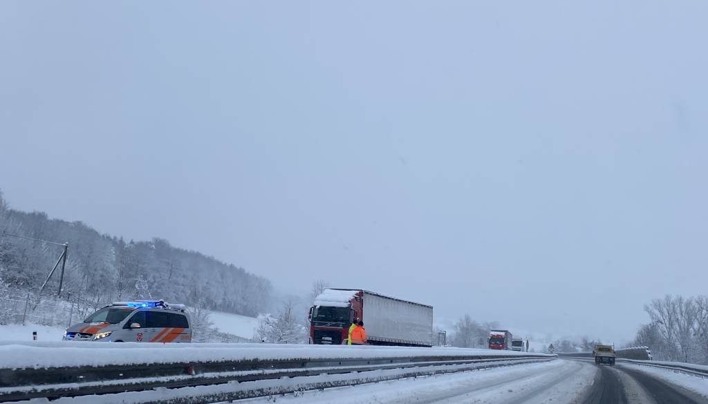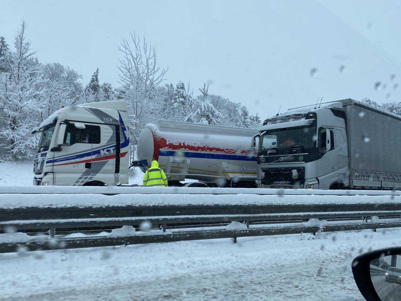 Iz smeri Murske Sobote proti Mariboru je na avtocesti zdrsnil tovornjak. O preglavicah na cestah zaradi sneženja poročajo tudi iz drugih koncev.
