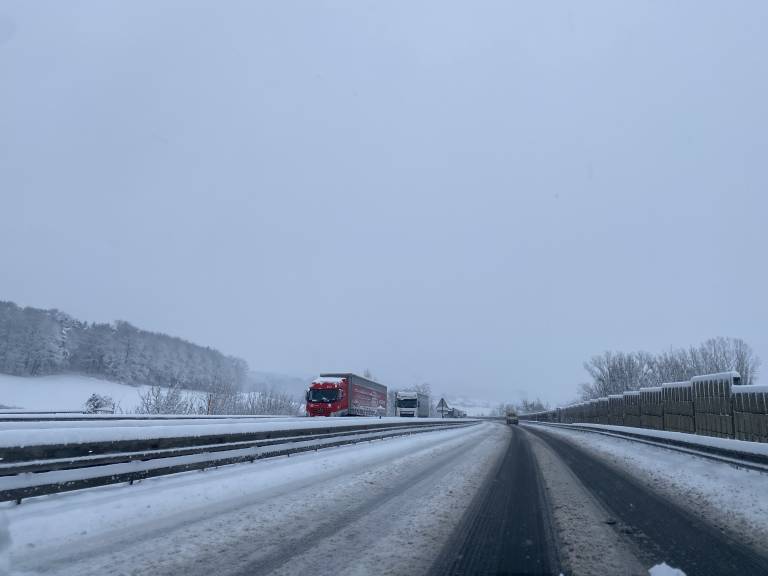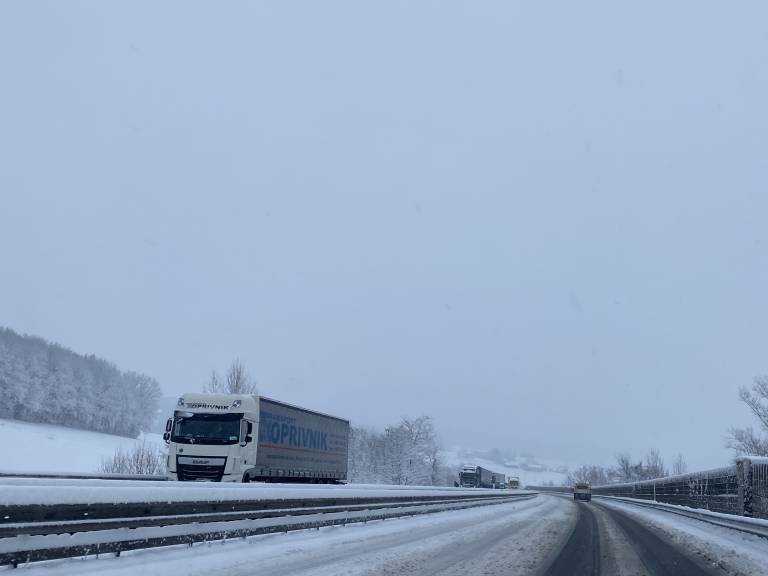 Pozor! Po večjem delu Slovenije sneži, promet je upočasnjen, ponekod nastajajo daljši zastoji. Prilagodite hitrost in varnostno razdaljo ter upoštevajte, da boste za pot potrebovali več časa kot običajno.