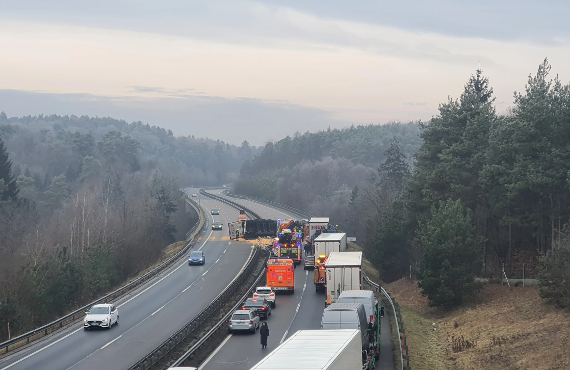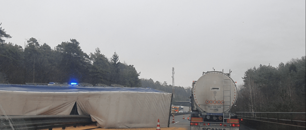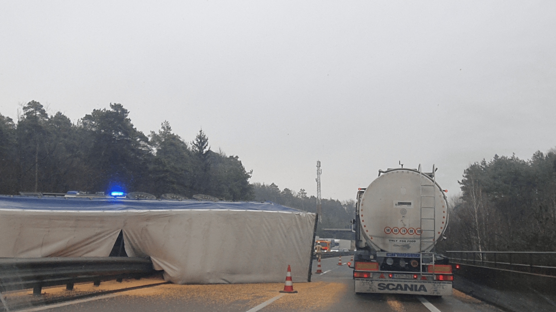 Kot smo že poročali, so bili danes, ob 9.10, policisti obveščeni, da se je na pomurski avtocesti, malo naprej od Vučje vasi v smeri Maribora prevrnilo tovorno vozilo tujih registrskih oznak.