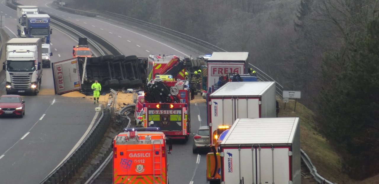 Pri nesreči je voznik zapeljal na desno bankino in nato nazaj na vozišče, kjer se je tovorno vozilo prevrnilo na bok in pri tem prebilo varnostno ograjo med smernima voziščema, tovor pa se je razsipal po vozišču.