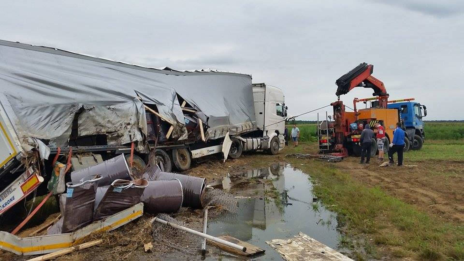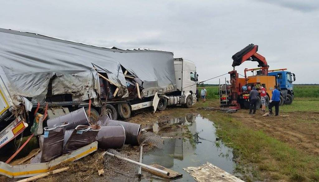 Policisti so z zbiranjem obvestil ugotovili, da državljan Romunije tovorno vozilo ni vozil po sredini prometnega pasu, zato je zapeljal izven vozišča in se prevrnil na desni bok. Voznik v prometni nesreči ni bil telesno poškodovan. Nastalo je za 45 tisoč evrov škode.