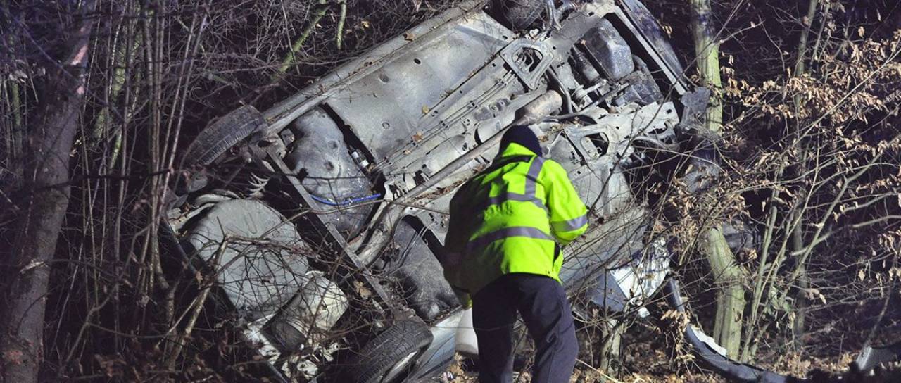 Voznika so v karamboliranem avtomobilu iskali zaman.