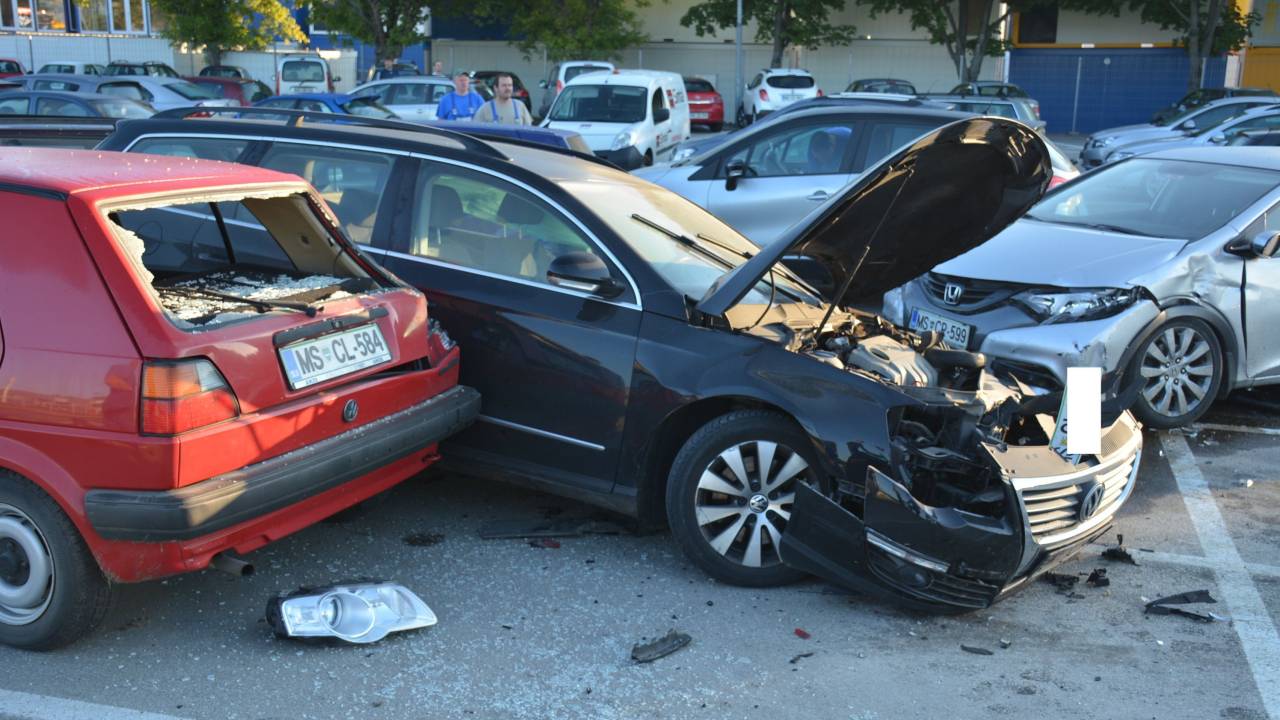 Voznik Passata je najprej trčil v parkirane avtomobile, nato pa pot proti mestu nadaljeval peš.