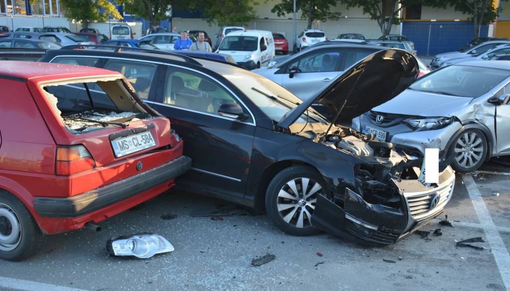 Voznik Passata je najprej trčil v parkirane avtomobile, nato pa pot proti mestu nadaljeval peš.