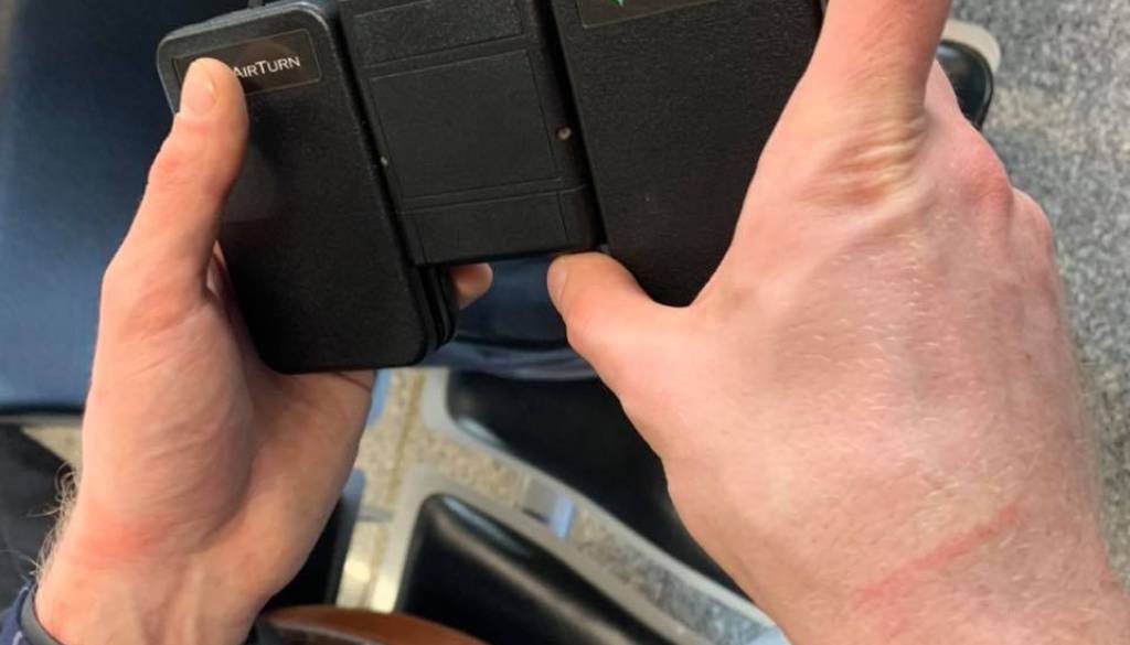 Naprava za pregledovanje na varnostni kontrolni točki je v njegovi torbi, kot kaže, zaznala nekaj, kar je bilo videti kot bomba, vključno z detonatorji. Ker policija prtljage ni smela odpreti, je strahove o bombi lahko razblinil šele strokovnjak, ki so ga poklicali iz Ljubljane. Ta je ugotovil, da gre za napravo Airturn 105, ki jo pianist uporablja pri svojem delu za obračanje listov z notami. Gre za napravo, podobno pedalu, ki ob pritisku na zaslonu obrne list z notnim zapisom.