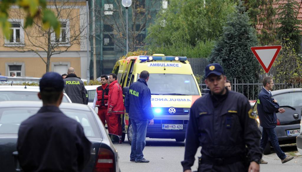 Ob prihodu policistov in reševalcev jim je pričel groziti z delujočo motorno žago in enega izmed policistov napadel.