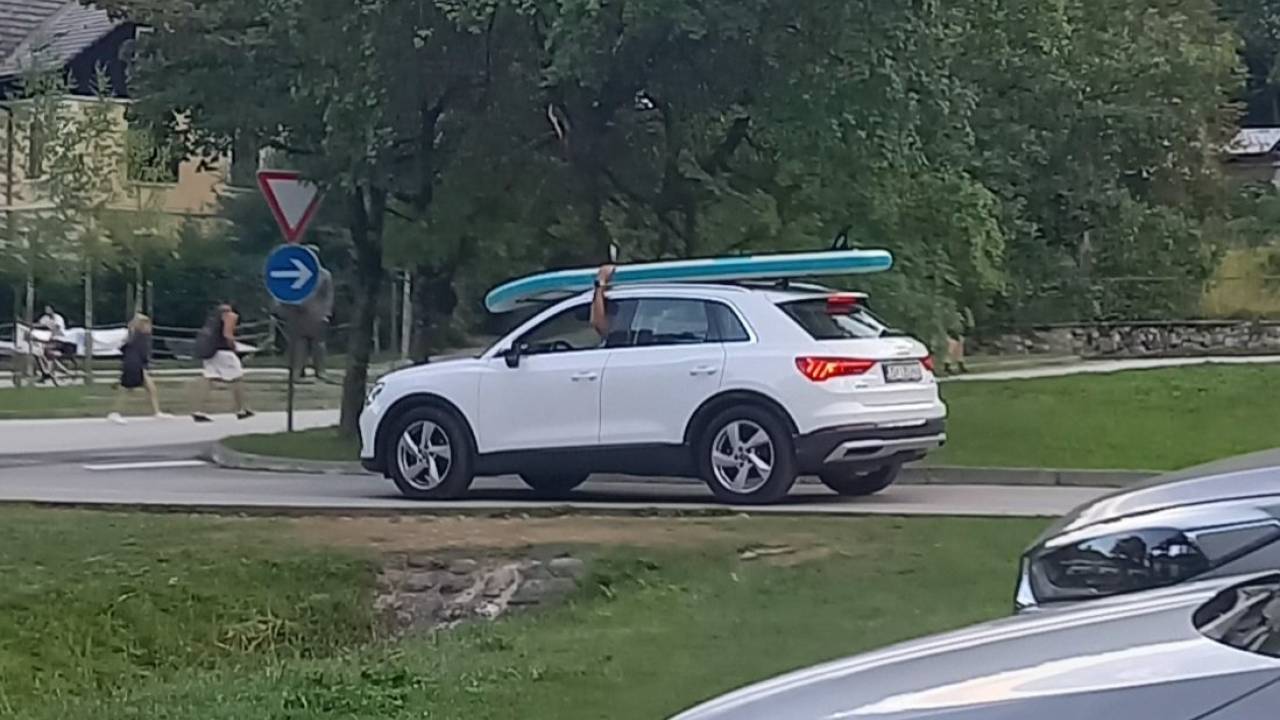 Policisti Policijske uprave Kranj so na družbenem omrežju delili nenavadno fotografijo, na kateri je vozilo, ki ima na strehi sup, voznik pa ga drži kar z roko.