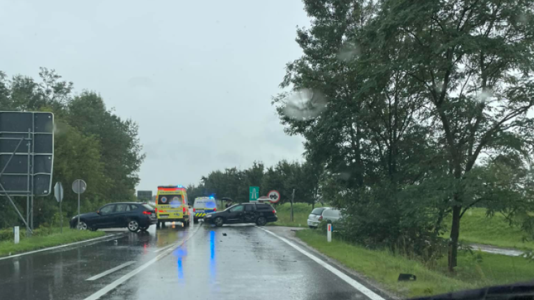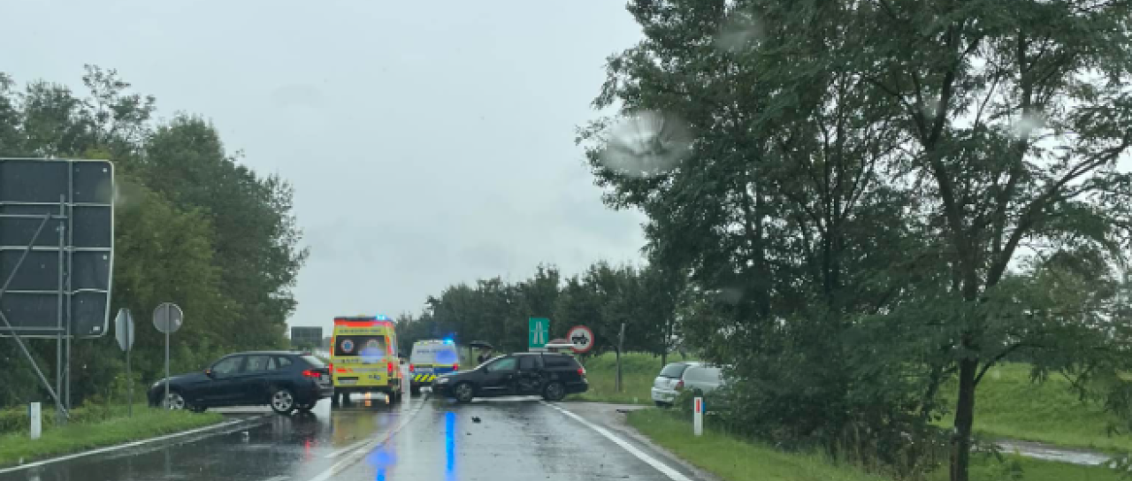Po poročanju Uprave Republike Slovenije za zaščito in reševanje sta ob 14.54 uri trčili osebni vozili.