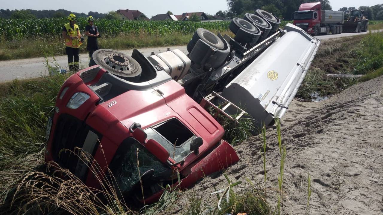 Voznik, državljan Bosne in Hercegovine z urejenim bivanjem v Sloveniji, je ostal ukleščen v vozilu, iz njega so ga izrezali gasilci.