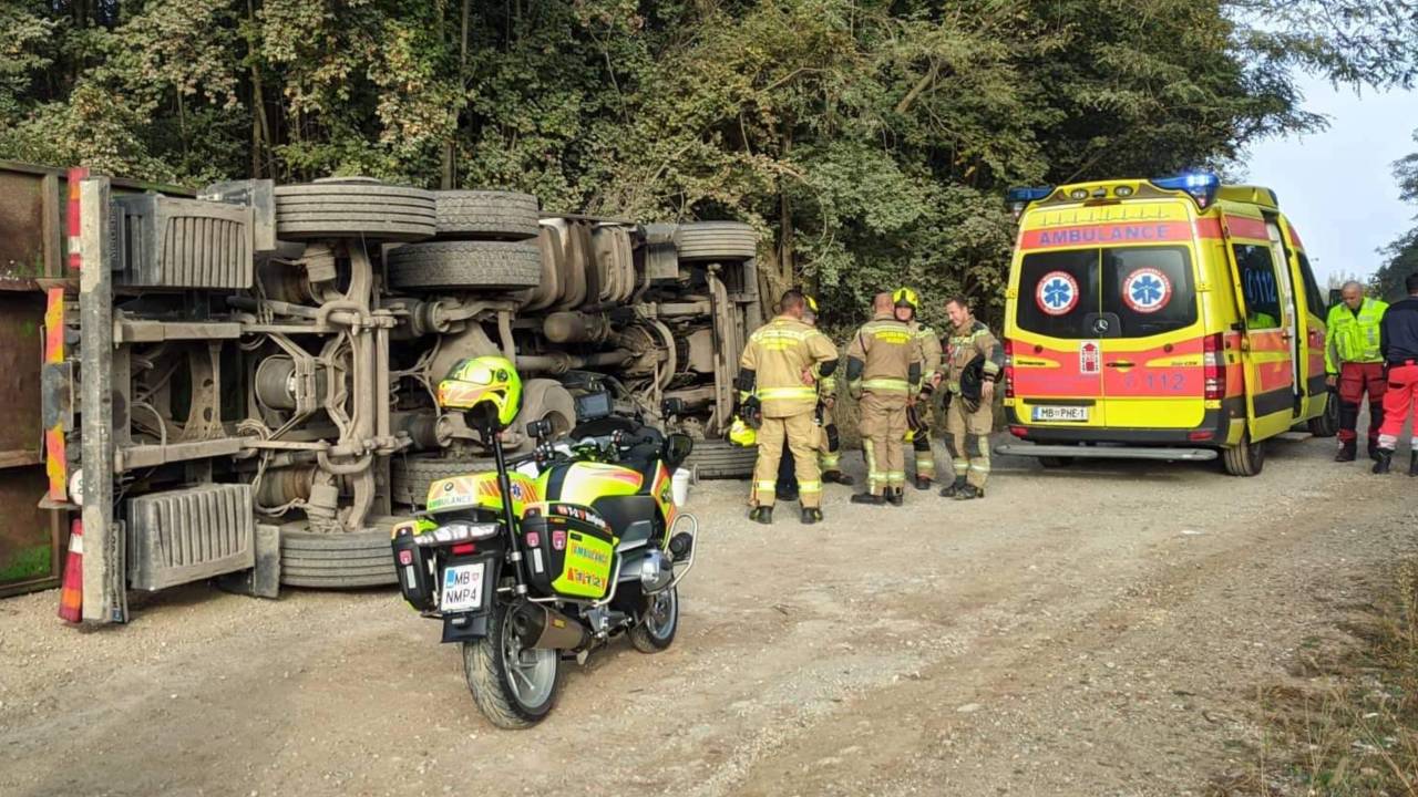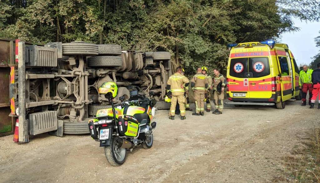 V Puconcih je na deponiji podjetja prišlo do delovne nezgode, v kateri se je prevrnil tovornjak. Gasilci so morali zato prečrpati 100 litrov goriva, v nesreči pa se je poškodoval voznik.