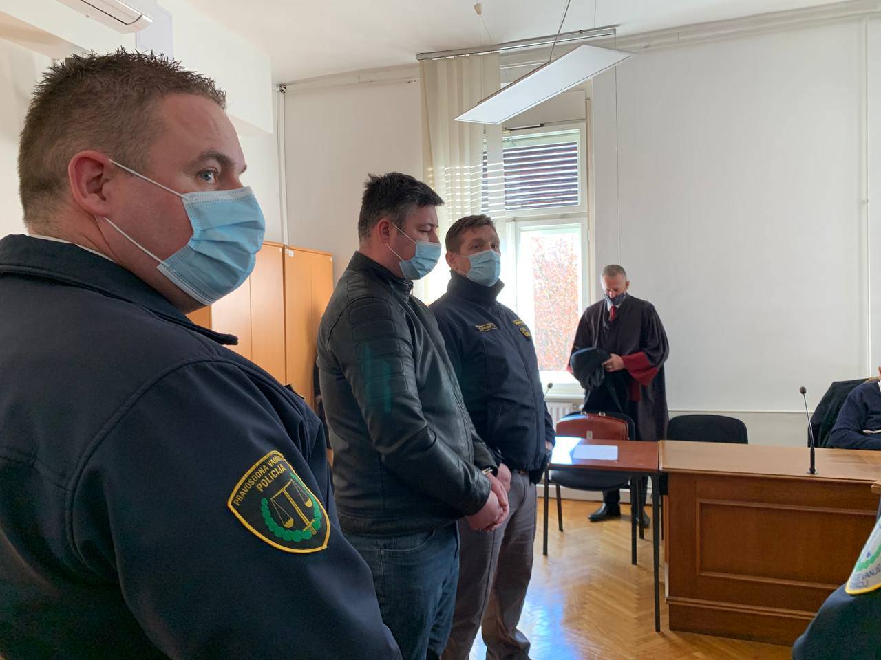 Drevenška so na sodišče takrat peljali pri zadnjem vhodu, zbrani pa so ga ob tem pospremili z vzkliki: »Dosmrtni zapor!« in »Fuj te bodi!«