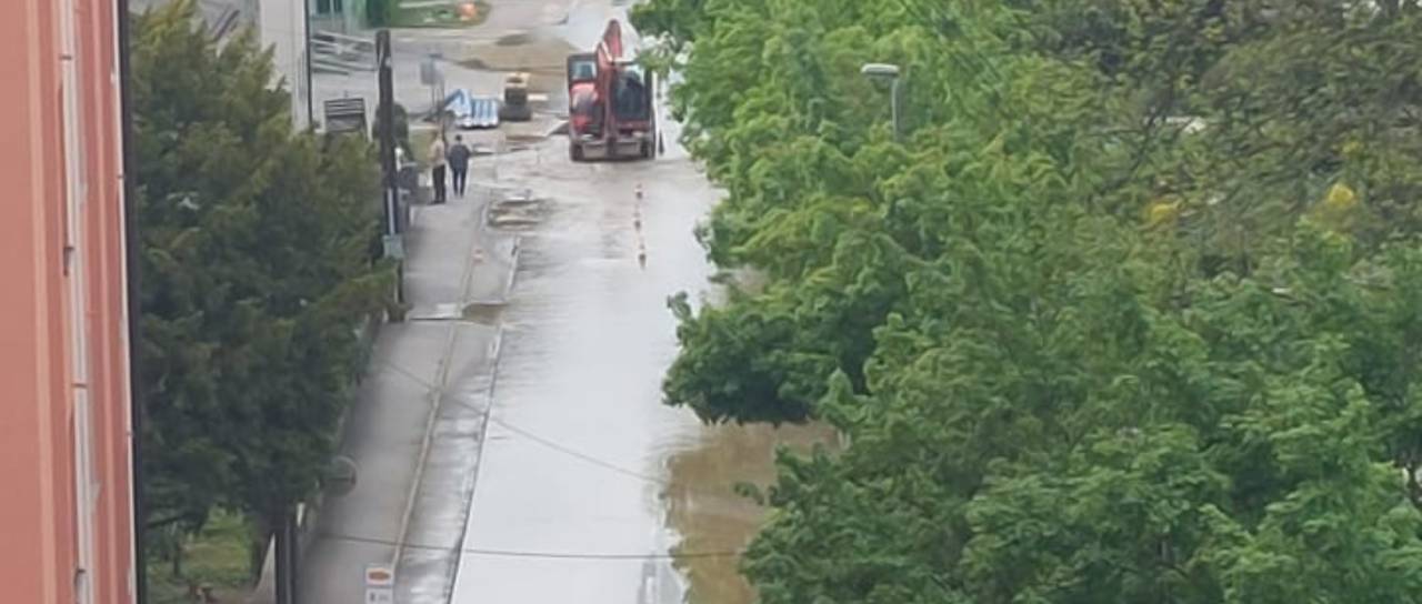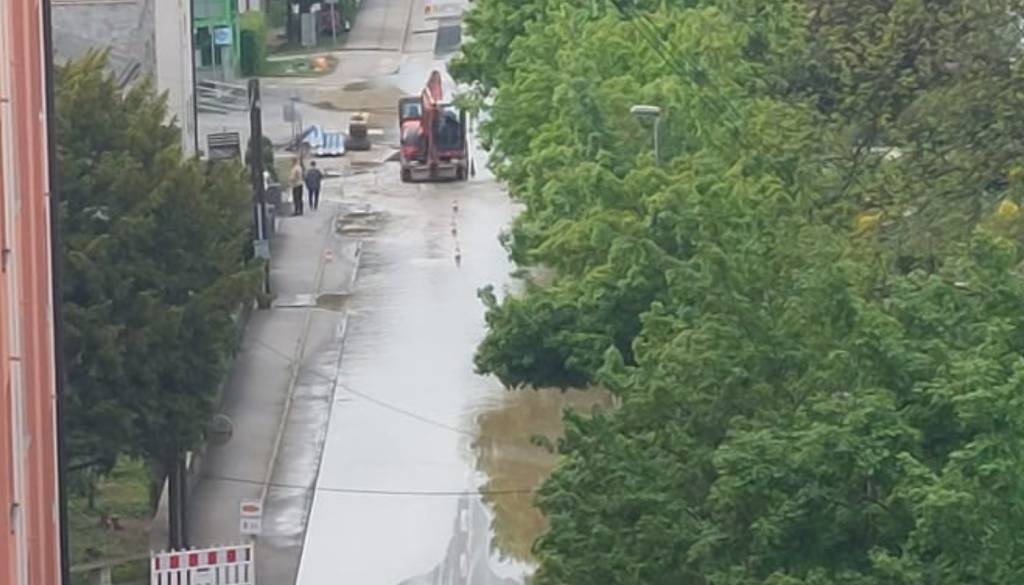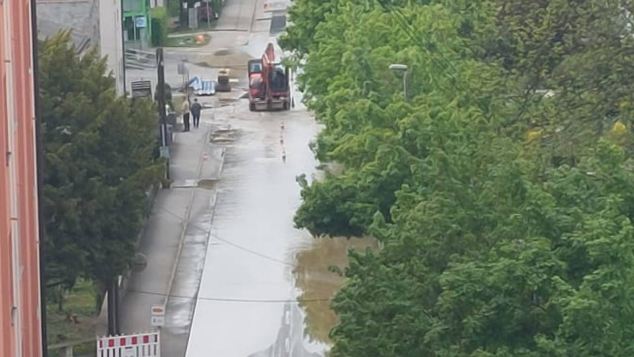 Pri zdravstvenem domu v Murski Soboti je poplavljena cesta.