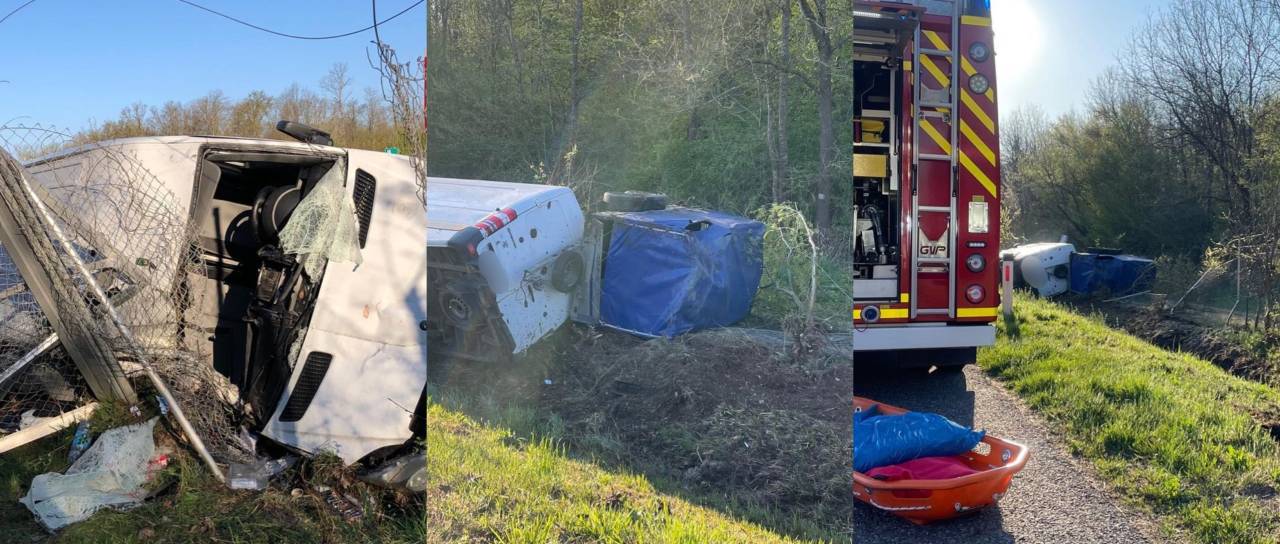 Uprava Republike Slovenije za zaščito in reševanje poroča, da je danes zjutraj, ob 6.33, na avtocesti, smer Murska Sobota – Lendava, natančneje pred izvozom Dolga vas, in sicer na območju občine Lendava, kombinirano vozilo zapeljalo z vozišča in se pri tem prevrnilo na bok.