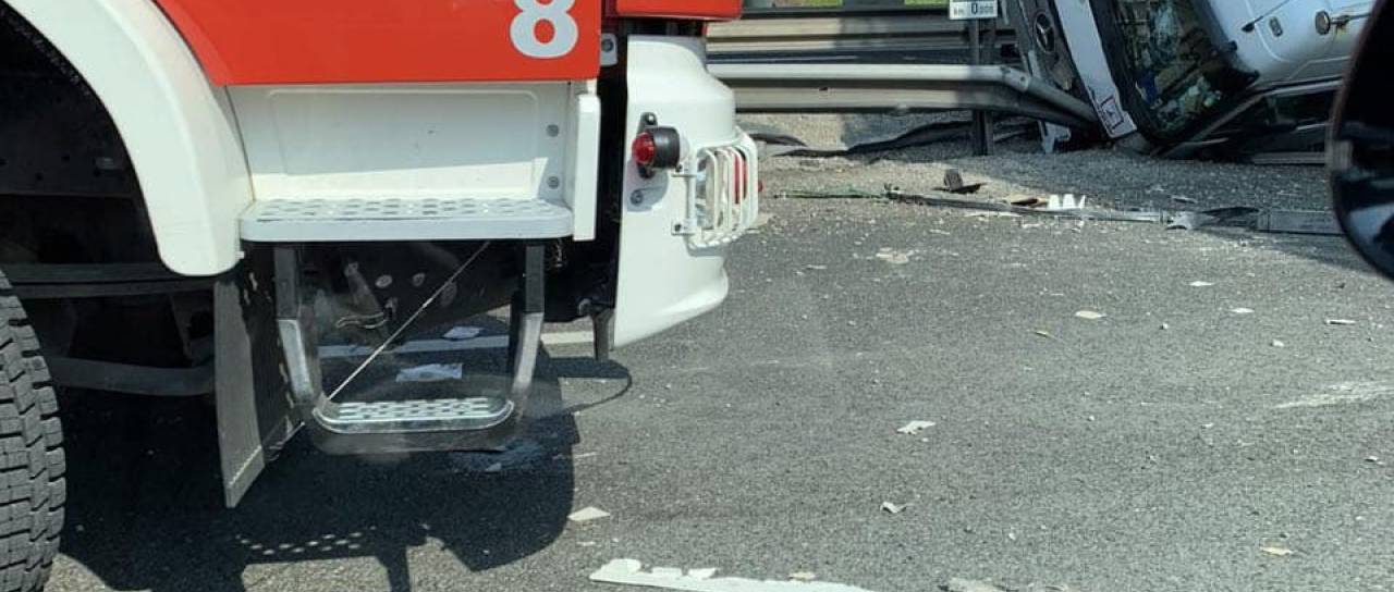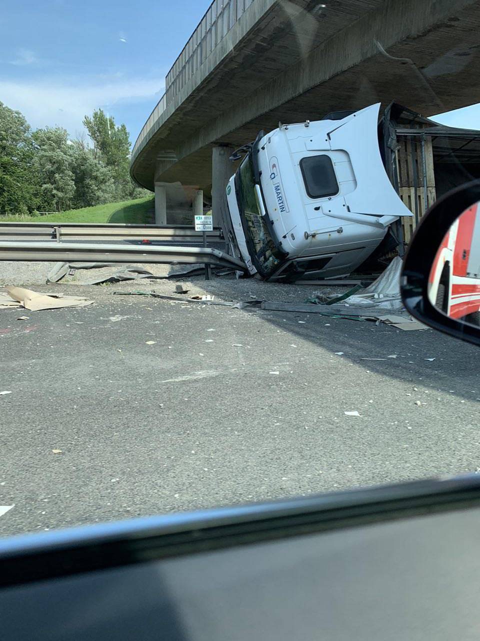 Na avtocesti Ljubljana - Koper je danes, 18. junija, ob 14.57, prišlo do hujše prometne nesreče. Tovornemu vozilu je odtrgalo levo kolo, ki je prebilo varnostno ograjo in obstalo na drugem voznem pasu.