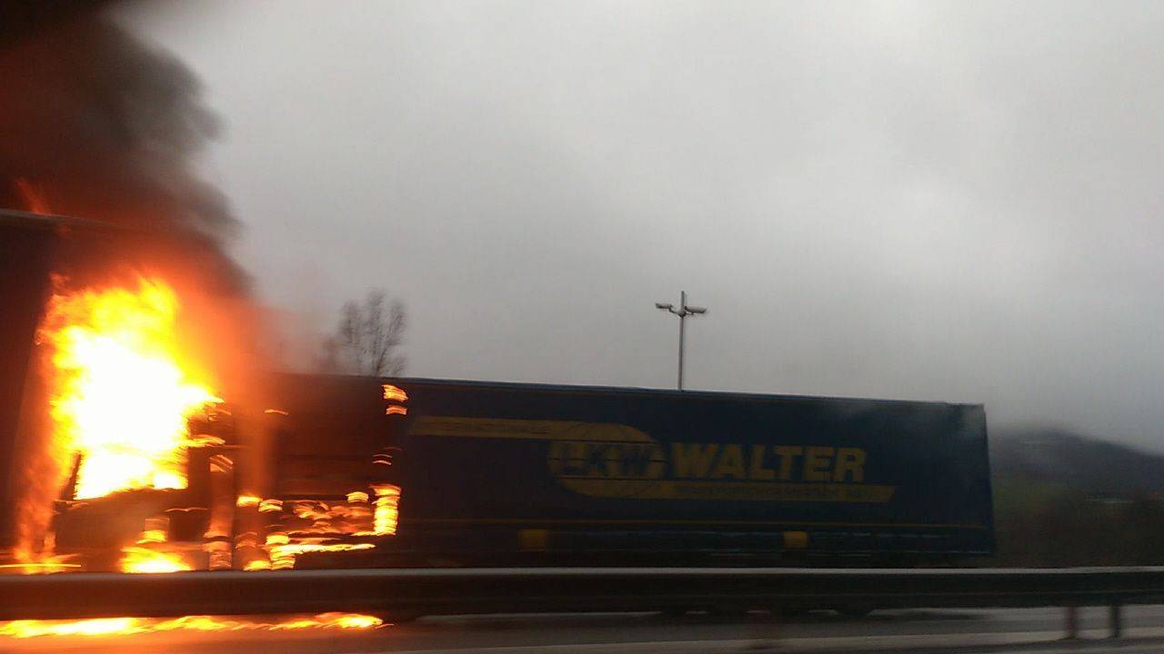 Kot smo že poročali, je včeraj zjutraj, ob 8.18, na pomurski avtocesti na odseku Vučja vas - Beltinci, nedaleč od Murske Sobote, zagorelo tovorno vozilo.