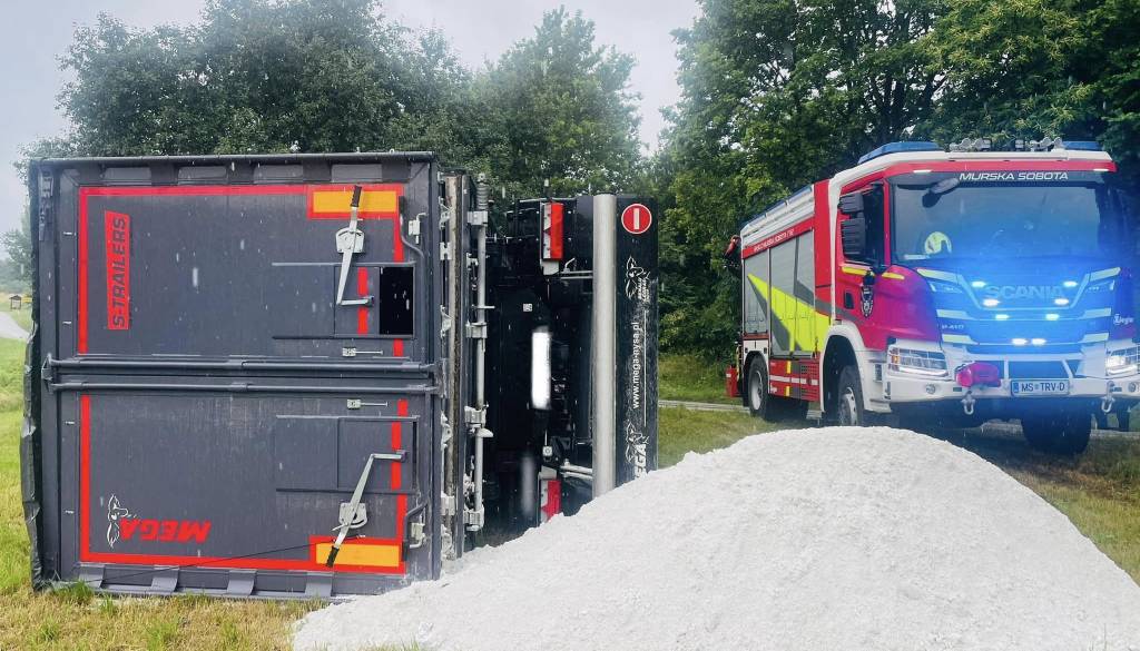 In sicer se je med raztovarjanjem tovora prevrnilo tovorno vozilo. Gasilci Prostovoljnega gasilskega društva Murska Sobota so zavarovali kraj dogodka in pomagali pri premiku tovornega vozila.