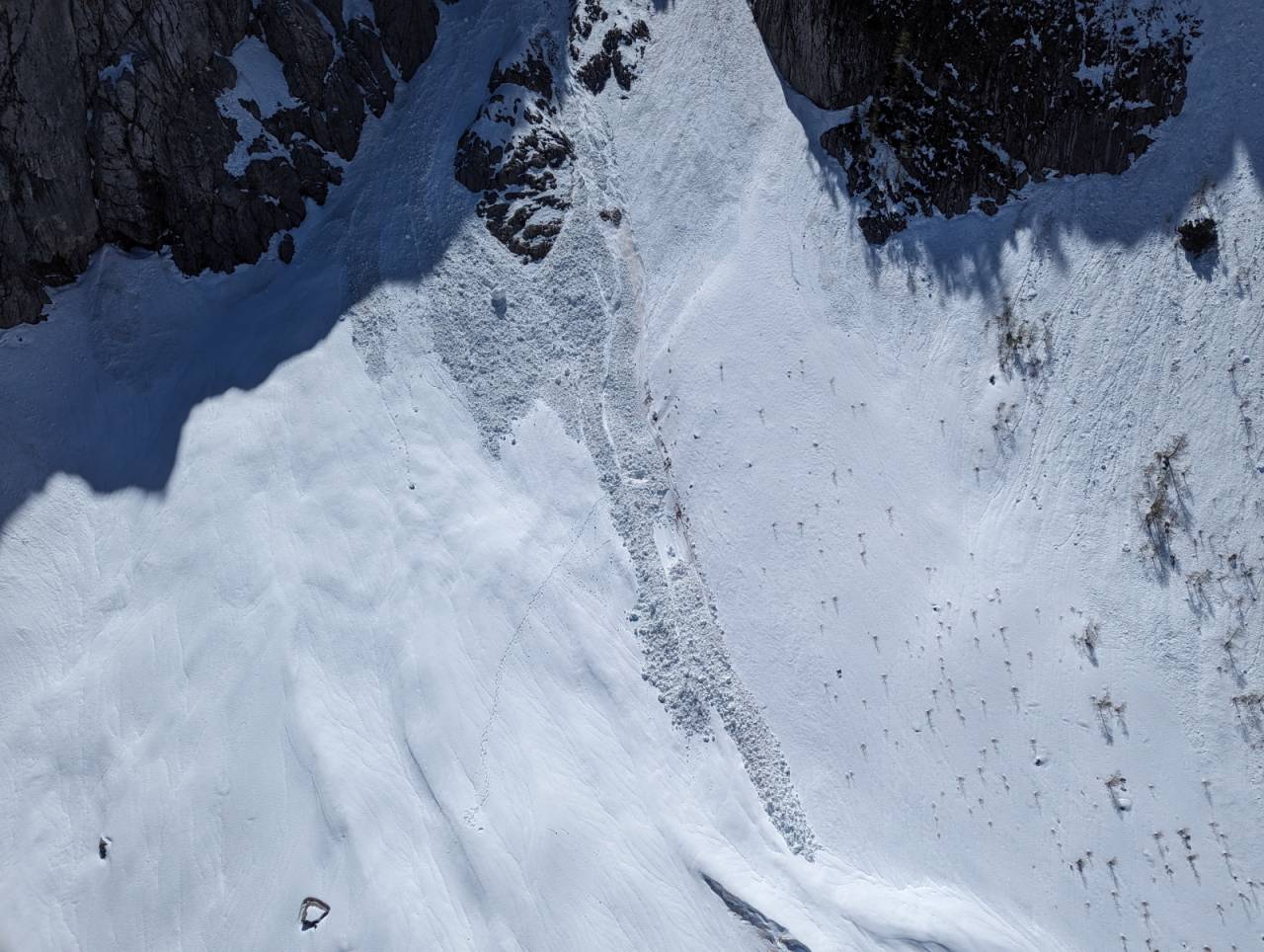 44-letni gornik, ki še ni bil vpet v sidrišče je ostal na mestu, kjer se je pripravljal za spust, drugega 30-letnega, ki je bil že vpet v sidrišče in pripravljen za spust, pa je snežni plaz zajel in odnesel čez skalni skok skupaj s sidriščem. Po padcu je gornik obstal zakopan pod snegom plazovine.